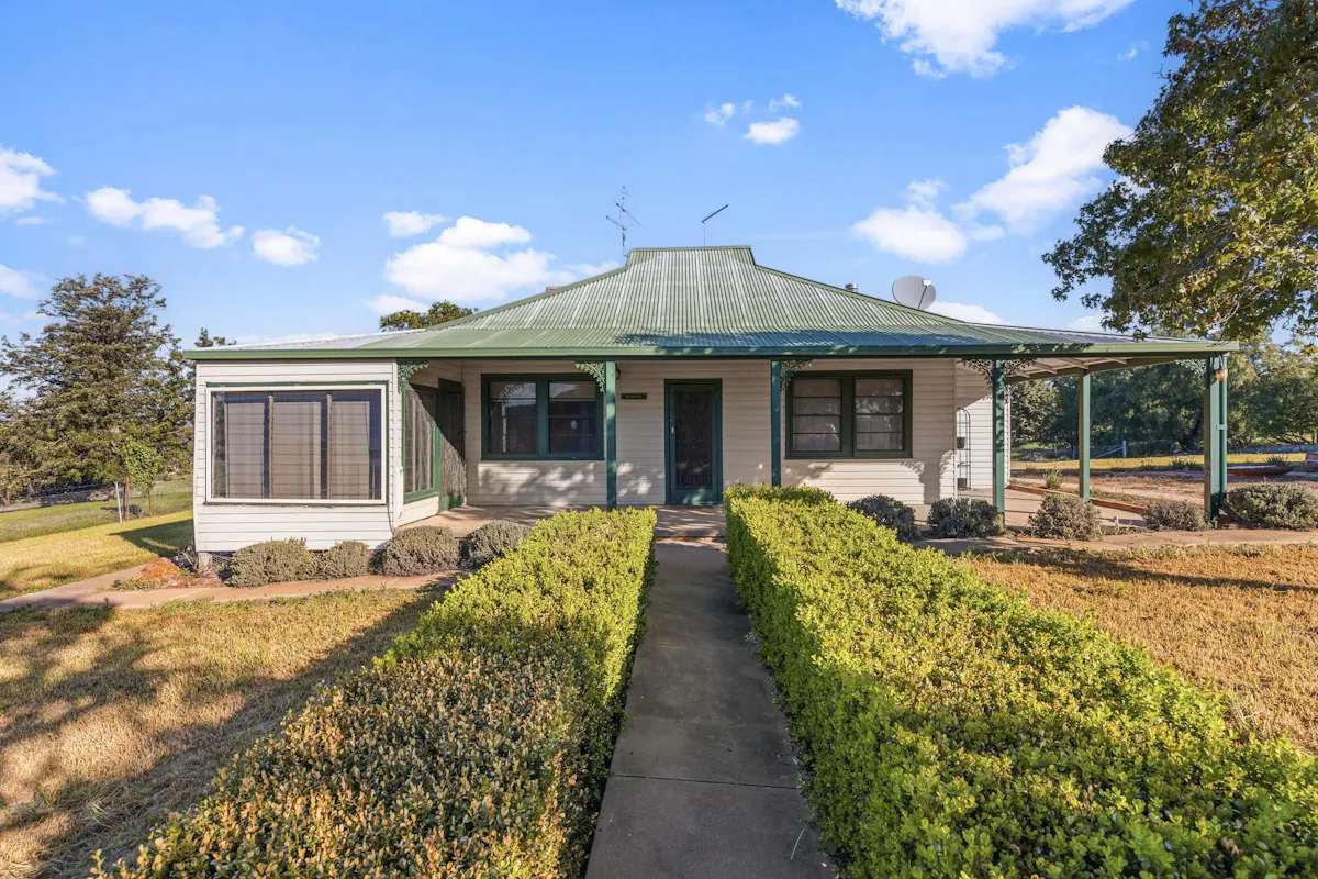 Positioned on an elevated site, the comfortable 1950s three-bedroom cottage enjoys sweeping views over the property, providing a peaceful rural lifestyle or a practical base for on-farm management.