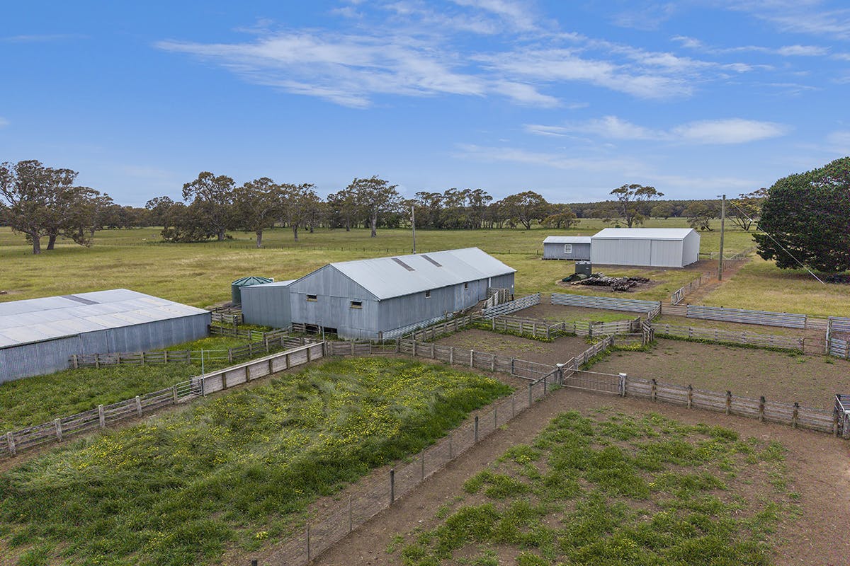 Comprising approximately 855 acres (346 hectares) across two titles, the property features gently undulating country with excellent native pastures, including rye grass and clover, well suited to both sheep and cattle production.