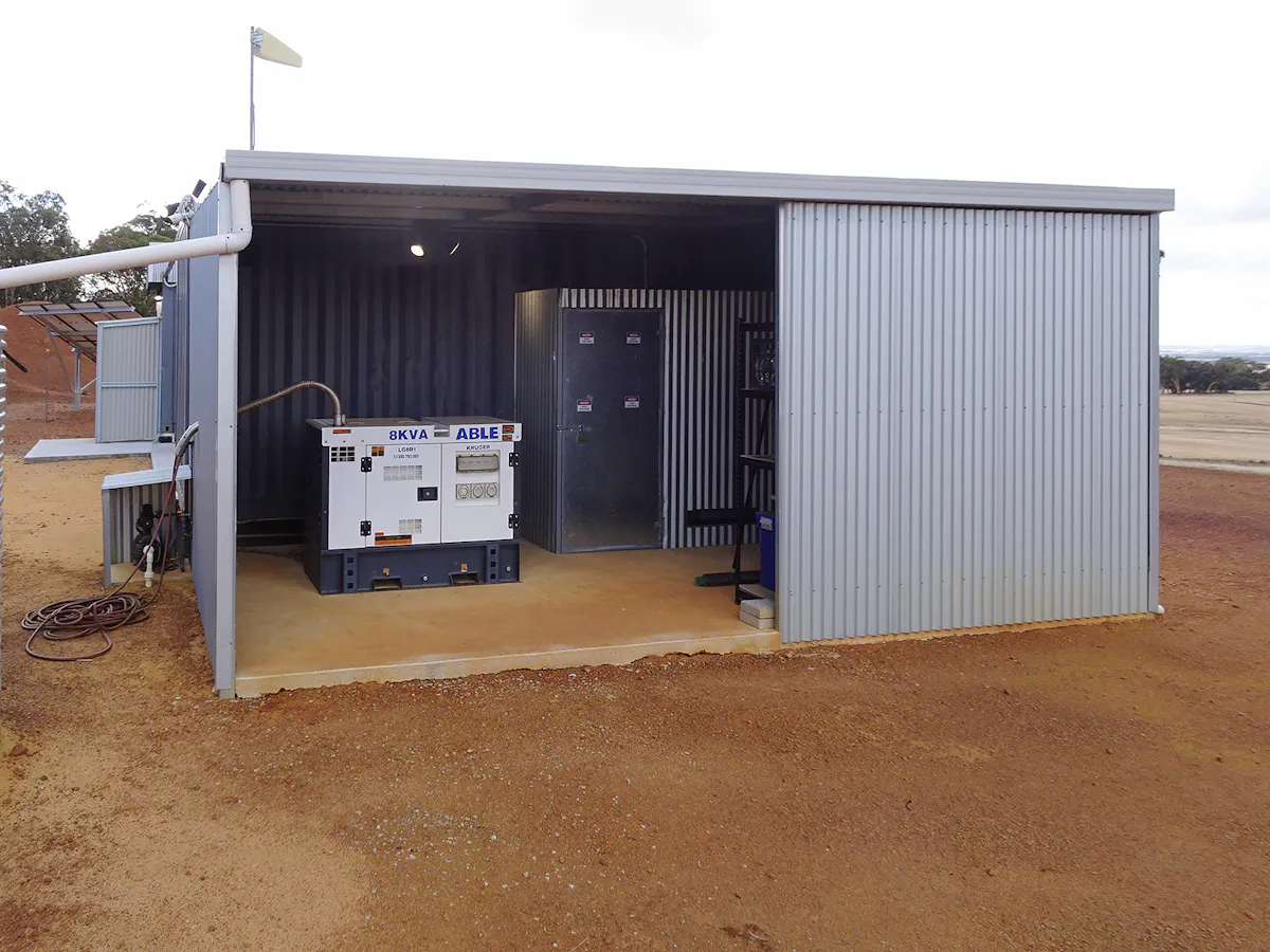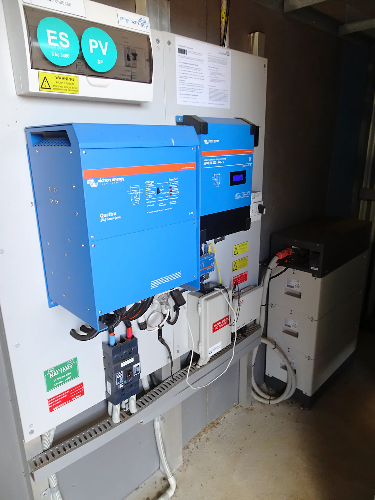 A separate building provides ample equipment storage and contains the off grid power generation system for the house.