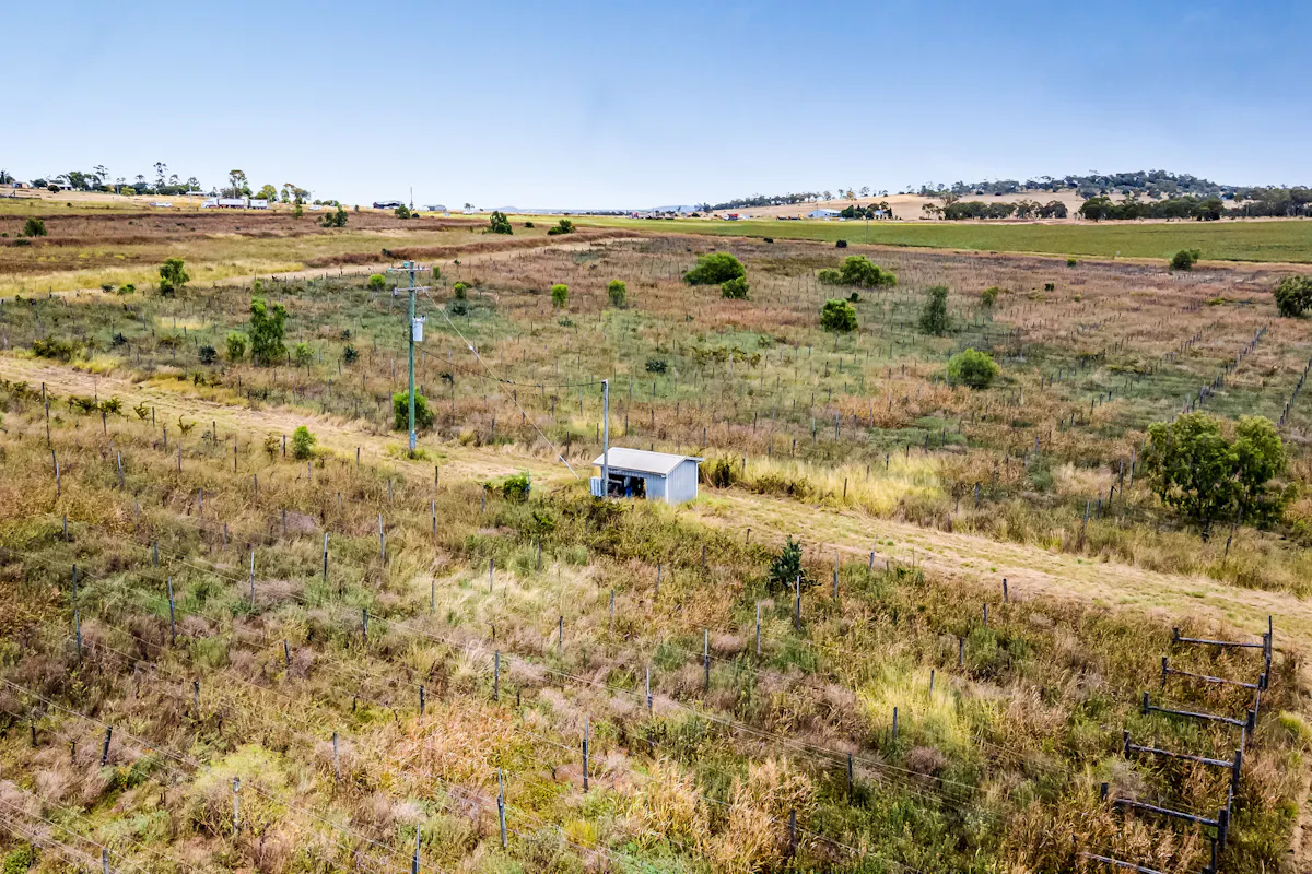 The former Gowrie Brae Vineyard, a landmark property in the tightly held Toowoomba Enterprise Hub district, is now offered for sale. It represents 153 Acres of quality alluvial black soil agricultural country gently sloping down from the Warrego Highway frontage to the north.The property has a 50 Meg Water Licence, an irrigation bore pumping to two large ring tanks of approx. 40,000 gallons each, and pressurised to 5 inch under-ground mains sending water to an extensive network of regulators and dripper lines over approximately 80 acres of the former productive grapevines. A windmill over a second bore stands in the lower 70 acres of the open grazing country on the lower northern section of the property.