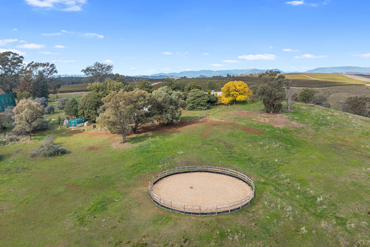 Thoughtfully planned for functionality and ease of use, the property is fully equipped and ready to perform. A professionally constructed 25m x 50m arena with a premium textile and sand surface provides year-round usability, complemented by a 20m round yard, both positioned to take in the stunning outlook. Equine facilities include two large 4m x 4m stables with attached yards, an undercover hitching area and a separate wash bay, while five well-fenced paddocks, each serviced by bore-fed troughs, allow for efficient stock management and rotation.