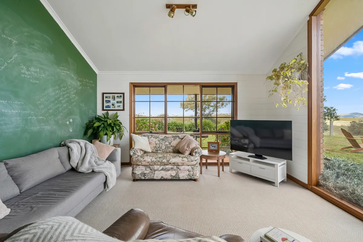 Water security is a key strength, with a 60m bore delivering a consistent supply, supported by substantial rainwater storage including two 25,000-litre concrete tanks. The land itself is highly usable, ranging from gently undulating grazing country to steeper, sheltered native bushland, offering both productivity and natural protection. A separate bush block invites quiet exploration, with abundant wildlife including wedge-tailed eagles, wombats, wallabies, and echidnas.