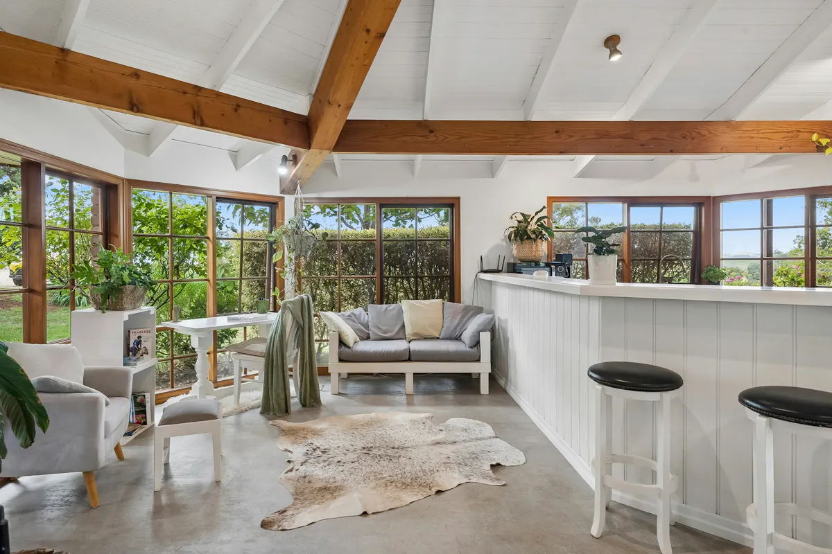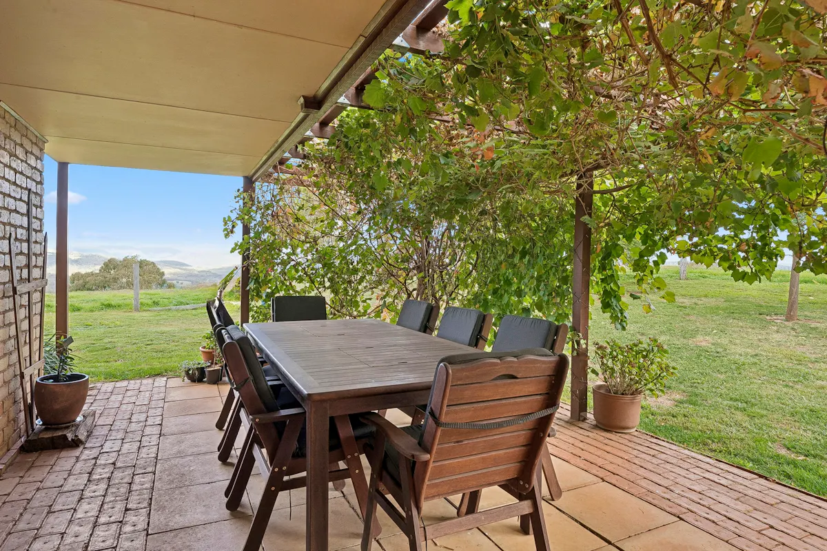 Extending seamlessly from the home, the outdoor living spaces have been thoughtfully designed to embrace the property's natural beauty. An inviting alfresco area draped in an ornamental grapevine sets the scene for relaxed entertaining, while a fire pit offers a welcoming place to gather under the stars. Beyond, a purpose-built yoga and meditation deck in the back paddock provides a peaceful vantage point, perfectly positioned to take in the incredible valley views.