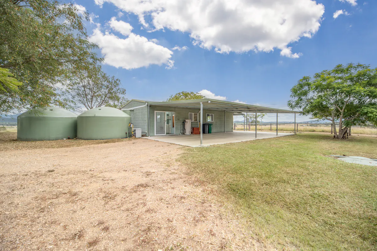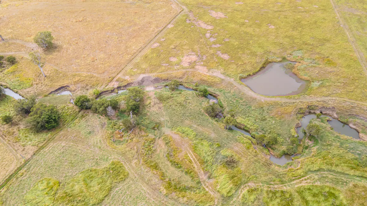 Water security is a feature, with dual frontage to two seasonal creeks—one offering reliable waterholes—along with a good-sized dam and two rainwater tanks servicing the home.