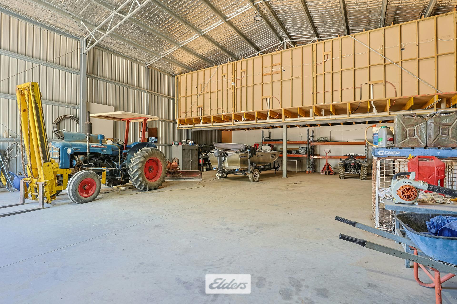 A substantial Colorbond-constructed building designed for both durability and comfort with all modern facilities for making living comfortable. A dedicated machinery storage area, cool room and ablution block are added features.