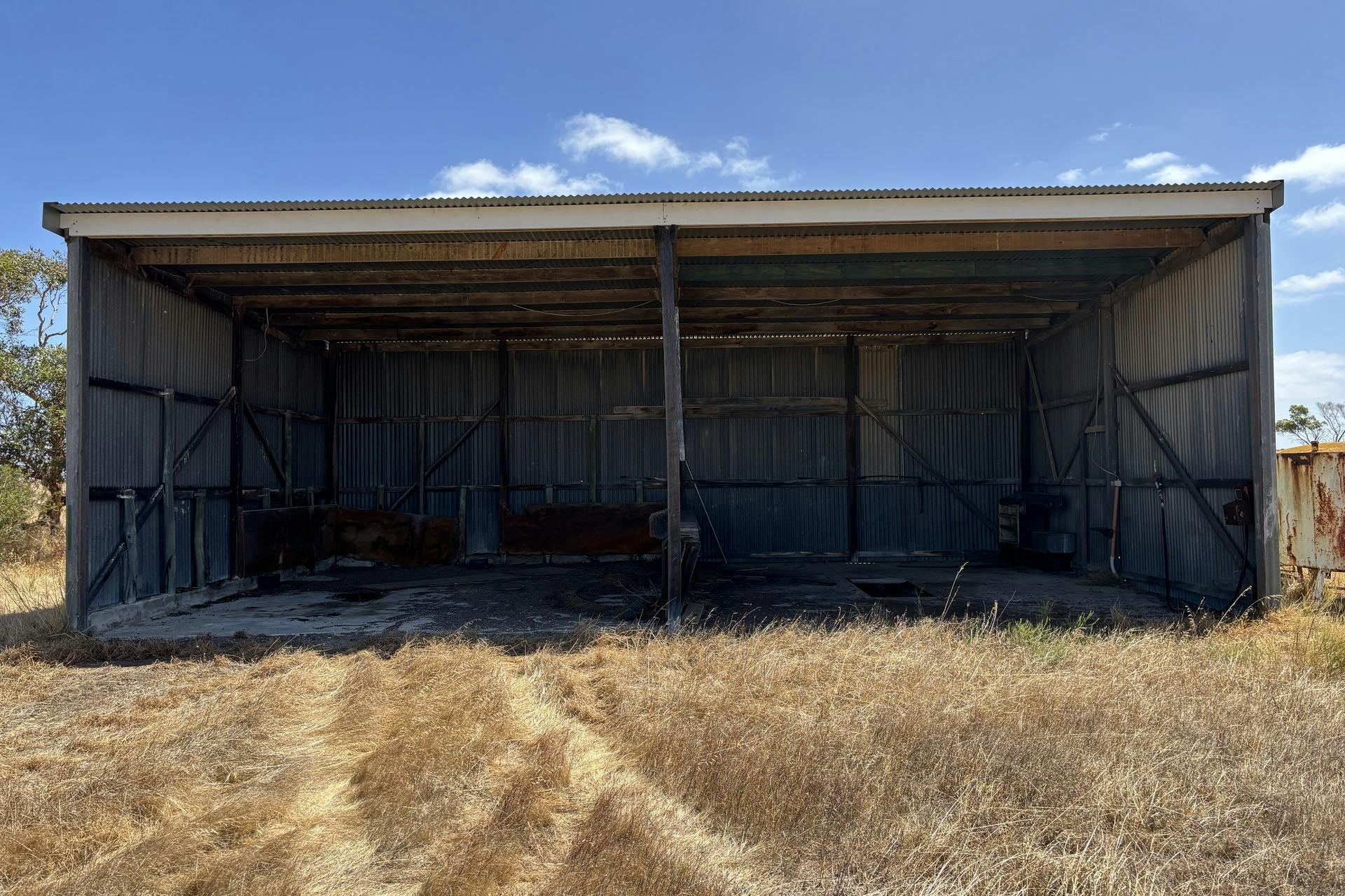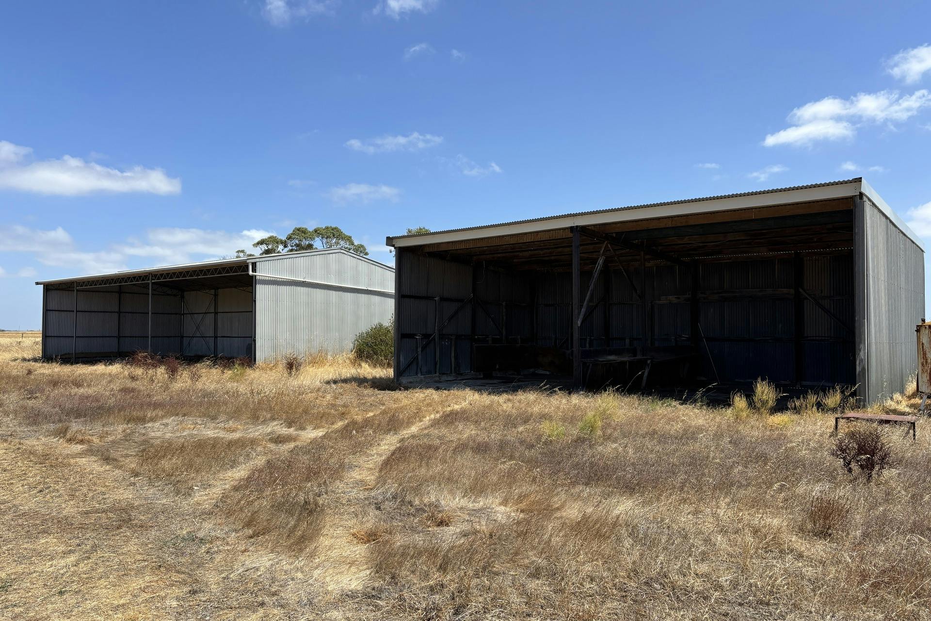 Improvements include 19m x 7.5m implement shed with earth floor, 12m x 7m implement shed with concrete floor and power, shearing shed with attached sheep yards.