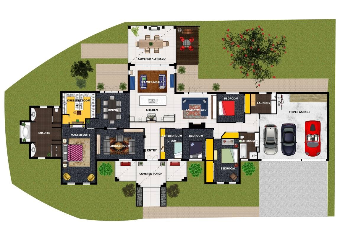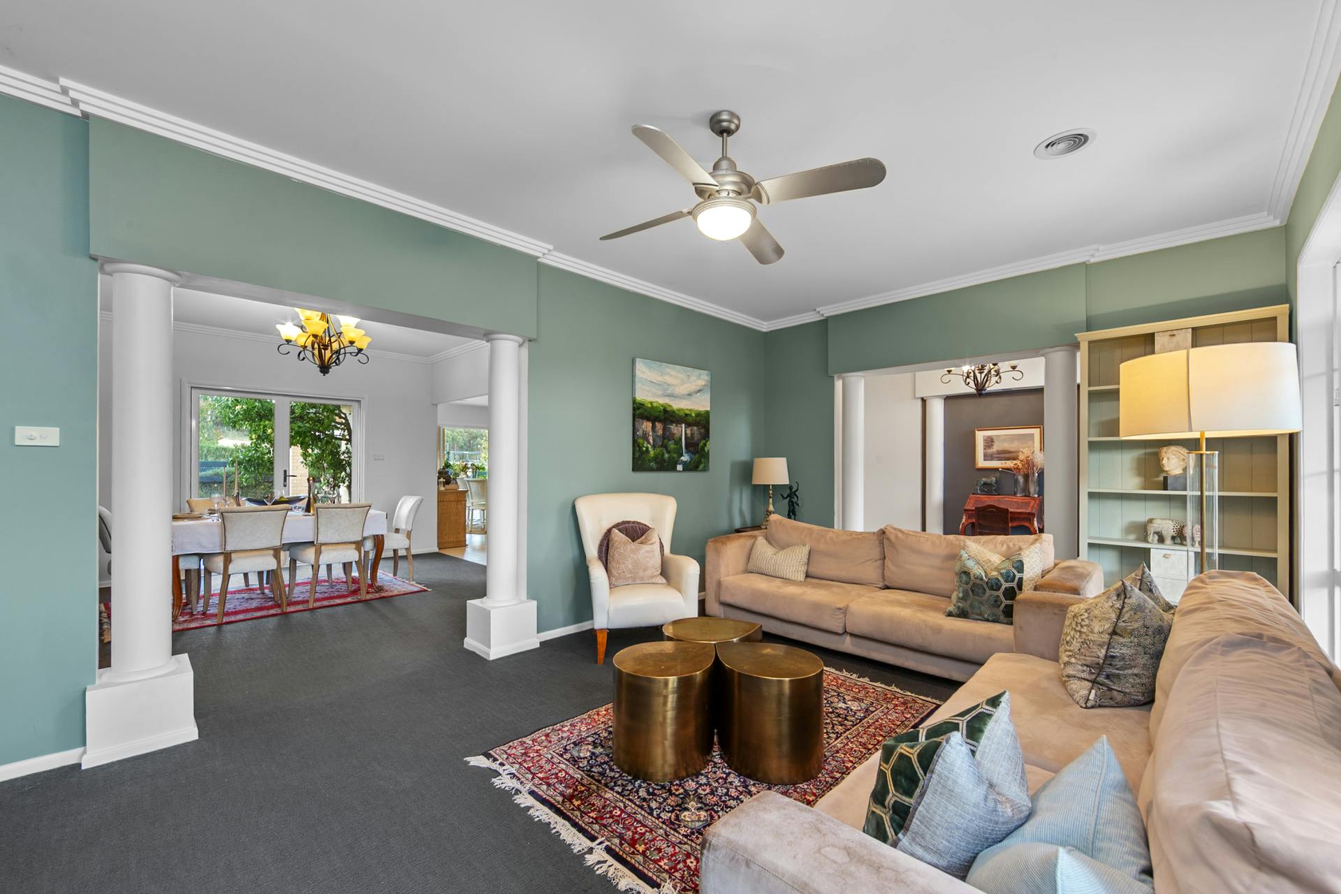 • Residential features:- grand guest arrival portico & entry foyer- 5 bedrooms with robes including a massive 65m2 master bedroom suite withhis/hers ensuite & dressing room/WiR- beautifully appointed fully equipped modern kitchen & meals conservatory, directly linked to a 55m2 covered alfresco- 40mm stone bench tops, SMEG appliances, Miele built-in coffee machine- formal lounge, formal dining & rumpus rooms- superb master bathroom with feature tiles- laundry/mud room with custom built-in storage- 2.7m high ceilings- luxurious marble design accents/appointments- quality inclusions & fittings• Garaging: triple attached garage• Climate control: ducted gas heating, split-cycle air-conditioning unit, built-in solid fuel heater