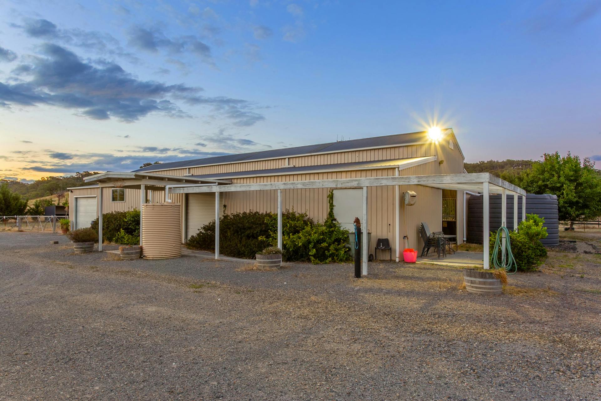 A result of expert planning, there's an impressive and robust array of infrastructure items spanning a412m main stable complex, additional detached stables, day shelters a cross-seasonal round yard and 8 day paddocks this is an inspirational set-up for achievement-focused horse people. Whilst our vendor's may be prepared to negotiate a sale price for the existing arena frame, it's on the ideal spot to insert your own sand arena (STCA). Power could be run 30m from the stable shed to give you year-round lighting.