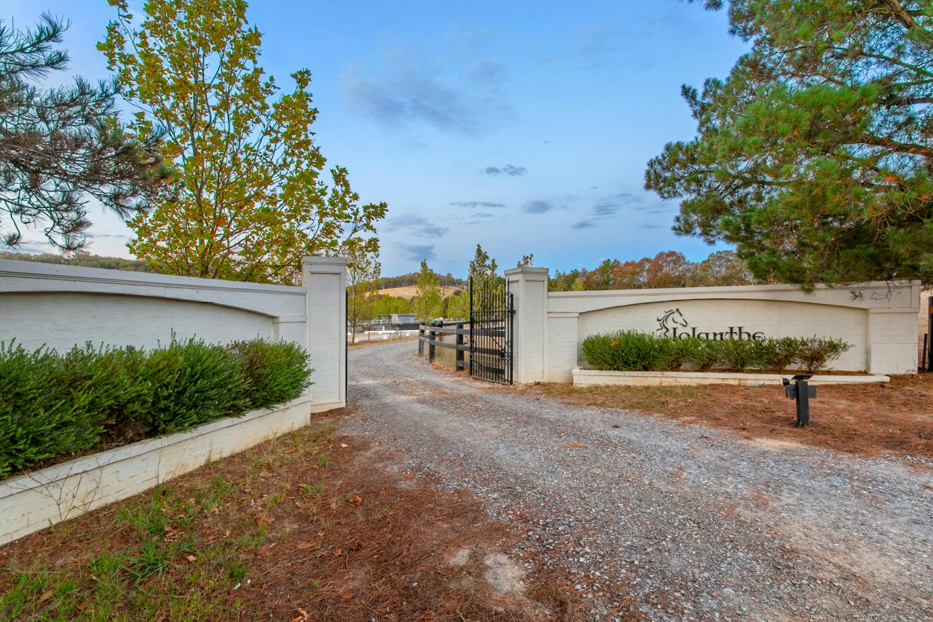 The professionally designed gardens are a mix of fragrant rose beds, annuals, geometric lawn pads and fenced veggie beds. Iolanthe's equestrian commercial level facilities are uncompromisingly authentic.