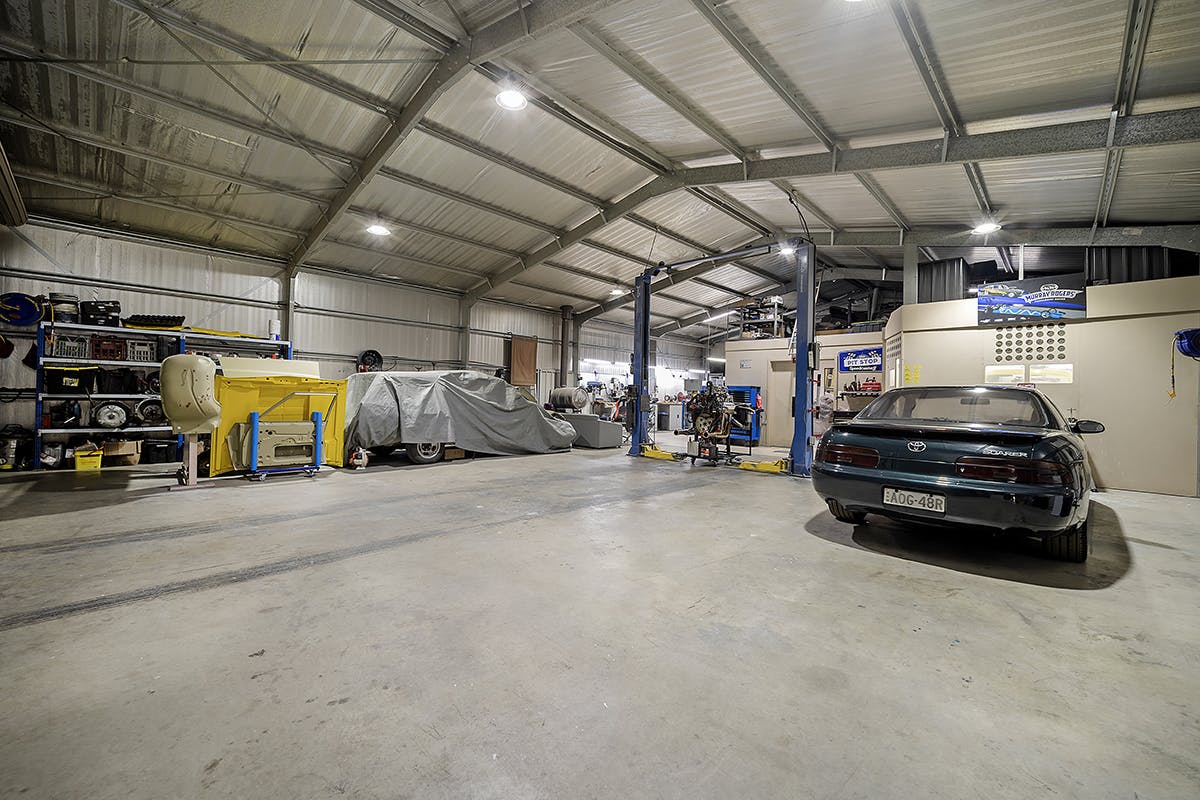 • Substantial 3 bay 18m x 12m shed, currently fitted out as an automotive workshop
