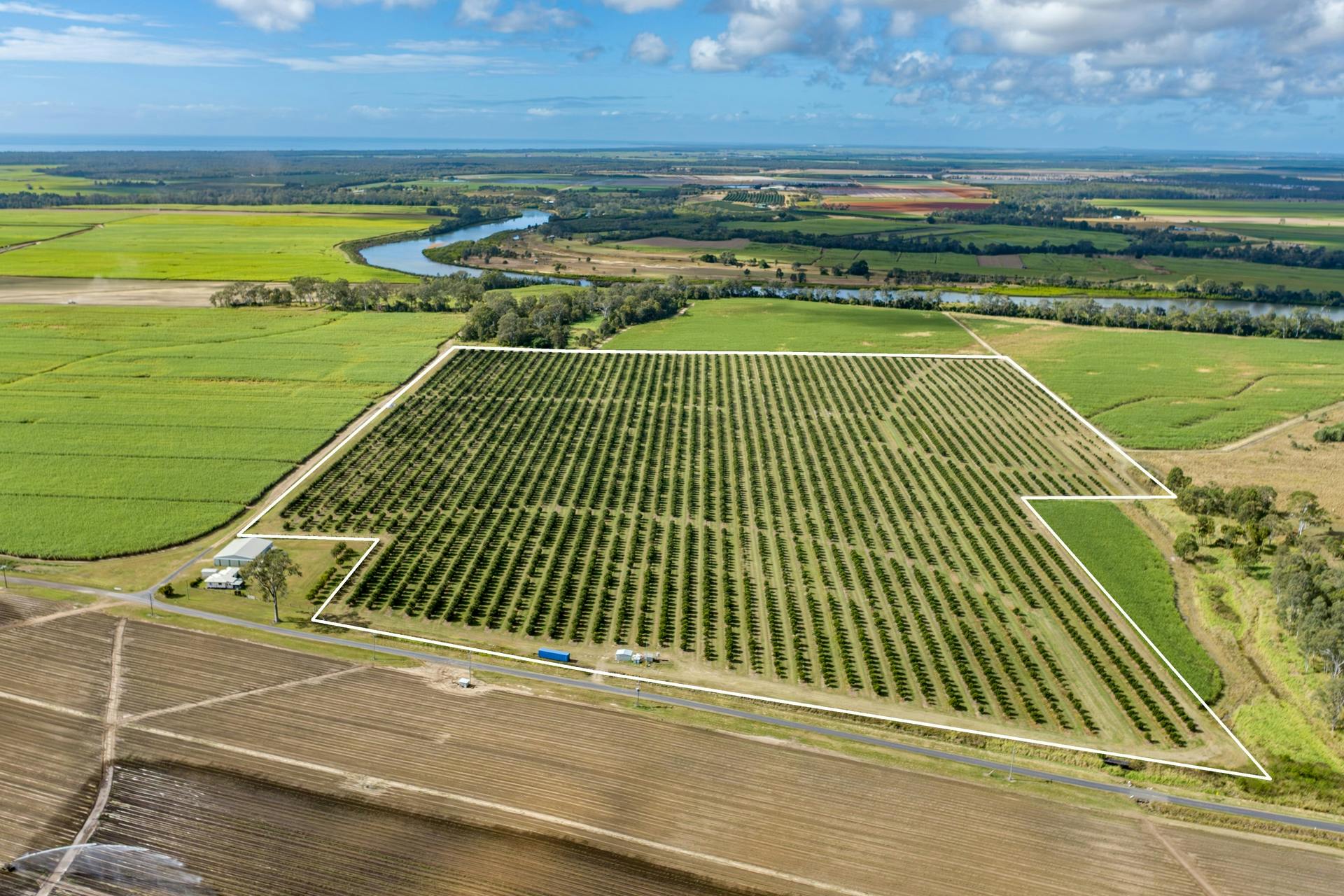 With a land area totalling 28.78 hectares with 26.6 hectares planted in 2020–21 to about 7,500 trees on 9 m x 4 m spacings. Flat, arable grey clay loam and a reliable 153 ML Sunwater allocation provide a low-cost operating base and a clear runway for yield growth as the orchard moves from first commercial crop in 2025 toward full bearing.The property presents as an easy, tidy block with underground mains and sub-mains, a steel-framed pump house with filtration and direct-injection fertigation. Proximity to Bundaberg's processing, labour and services adds convenience and supports timely harvest and dispatch, making Avondale an attractive entry or bolt-on orchard with compelling near-term production upside.