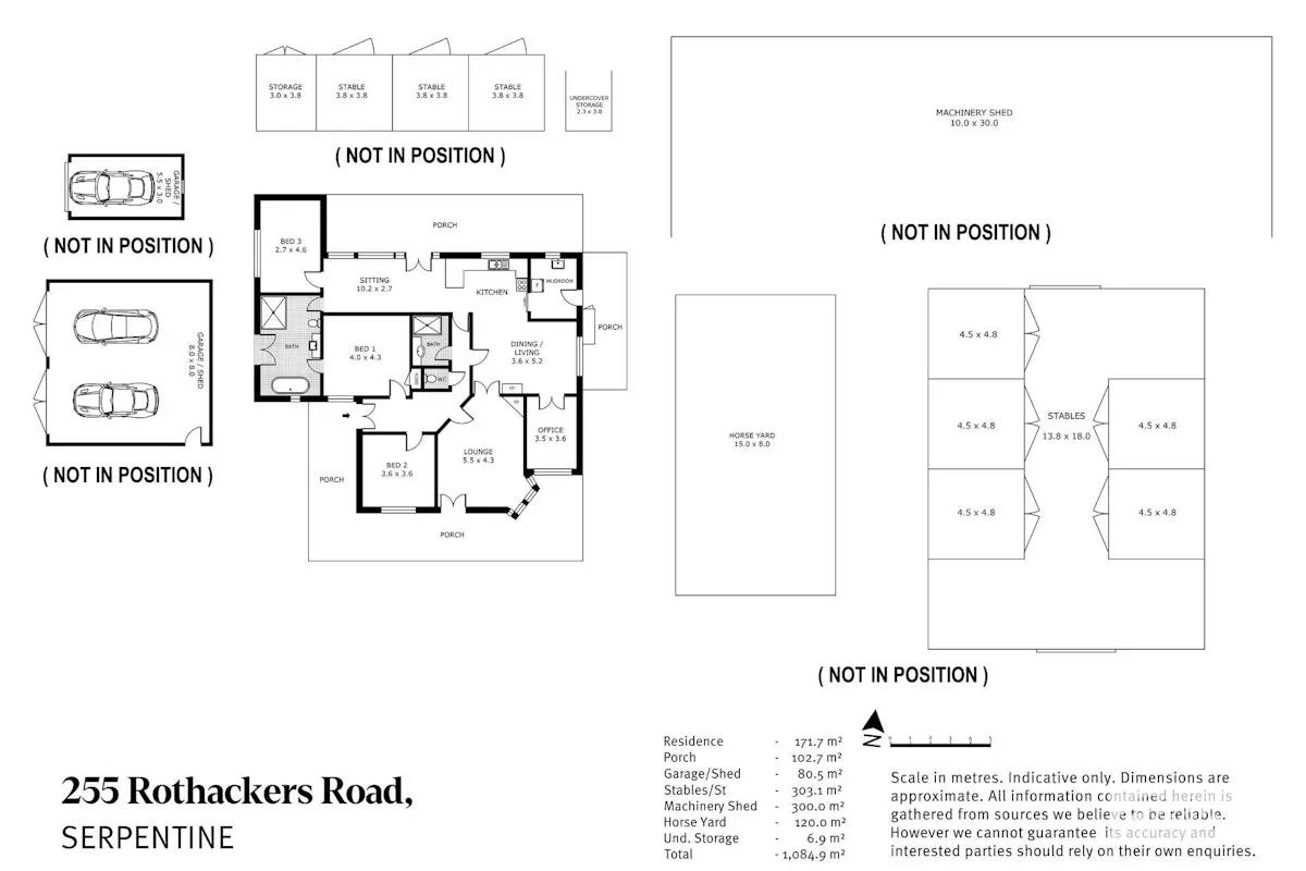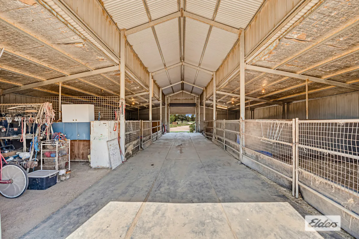 Substantial improvements include an 8 bay American barn stable complex with 5 stalls and tack and harness areas. A 30m x 10m machinery shed, 3 sandstone stables, a harness shed, and 3 walk in walk out stables with day yards. A hot walker for up to six horses, hay shed, feed shed, tack room, and harness area. There is a 100 bag elevated silo, a hot and cold wash and tie up rail, and cattle yards with a race and crush. A site office with kitchen, toilet and shower are ideal to continue offering riding clinics or on farm shows and sales.