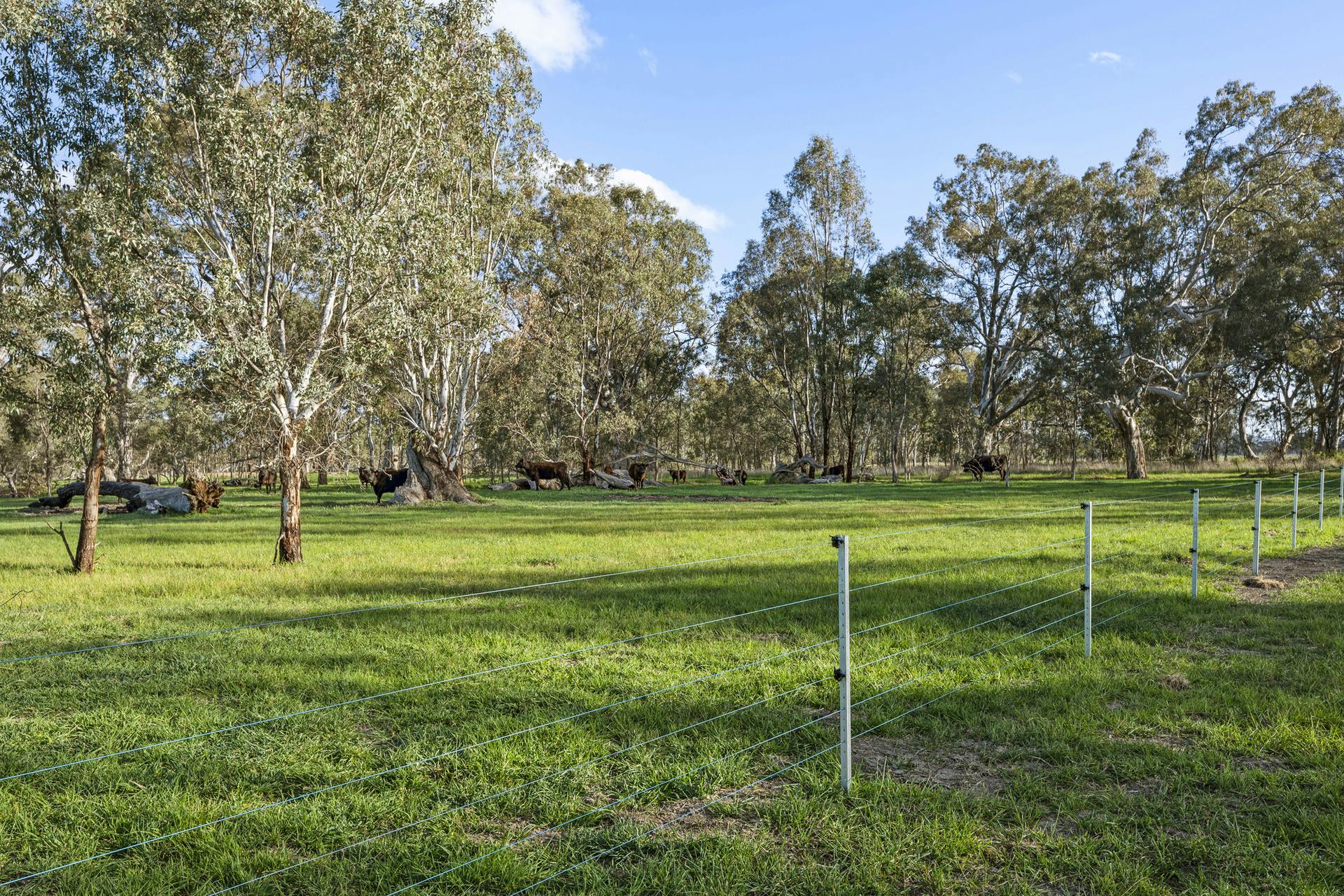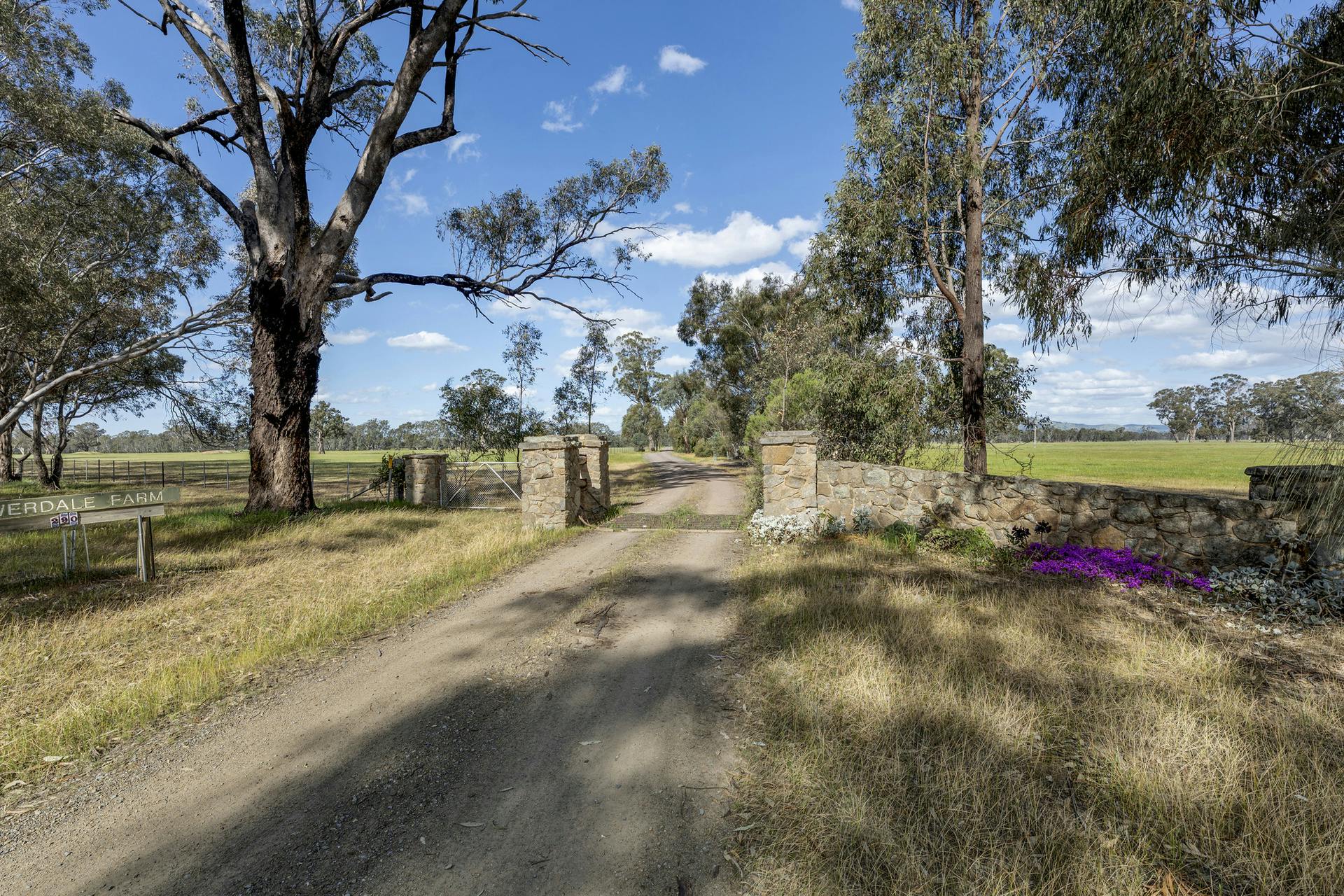 Comprising 306 ha (755 ac)* across ten titles, Flowerdale Farm is laid out for efficient, low-stress livestock management. The holding is anchored by dual, fenced frontage to Faithfuls Creek and Riggs Creek, where stands of soaring native trees provide shelter, shade and environmental amenity along the corridors. A practical laneway system links 14* well-fenced paddocks, most carrying improved pastures supported by a fertiliser and input history-ready to continue breeding, trading and fodder programs from day one.
