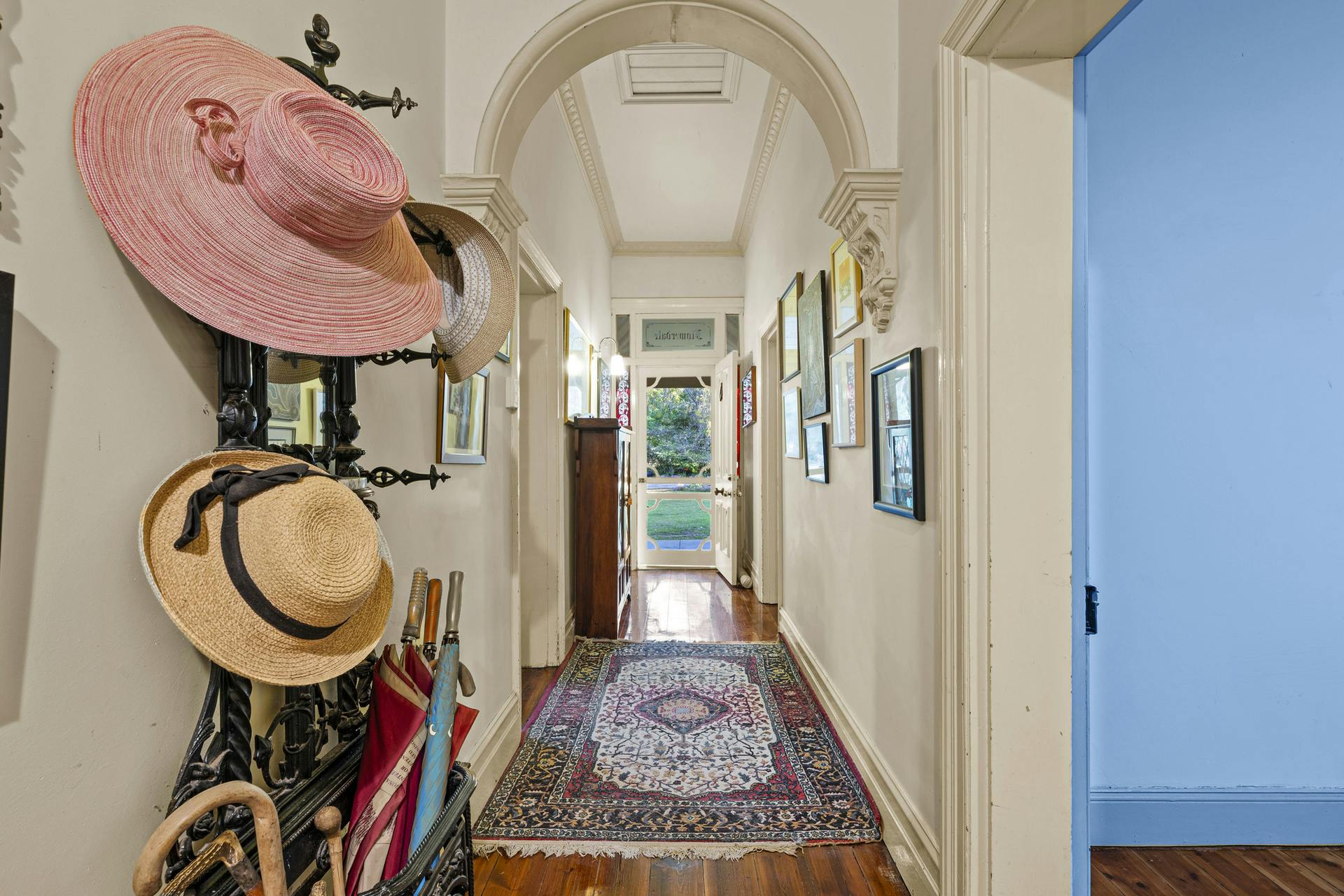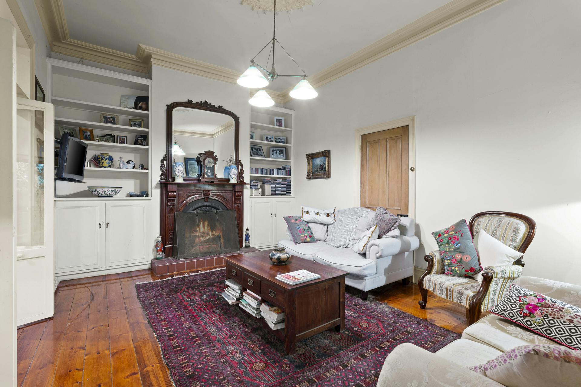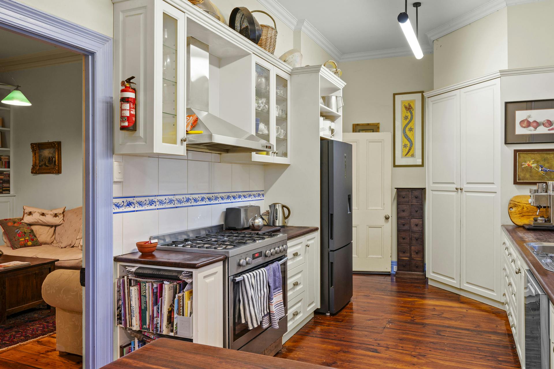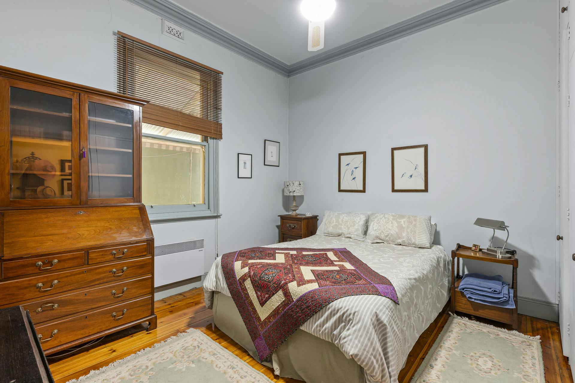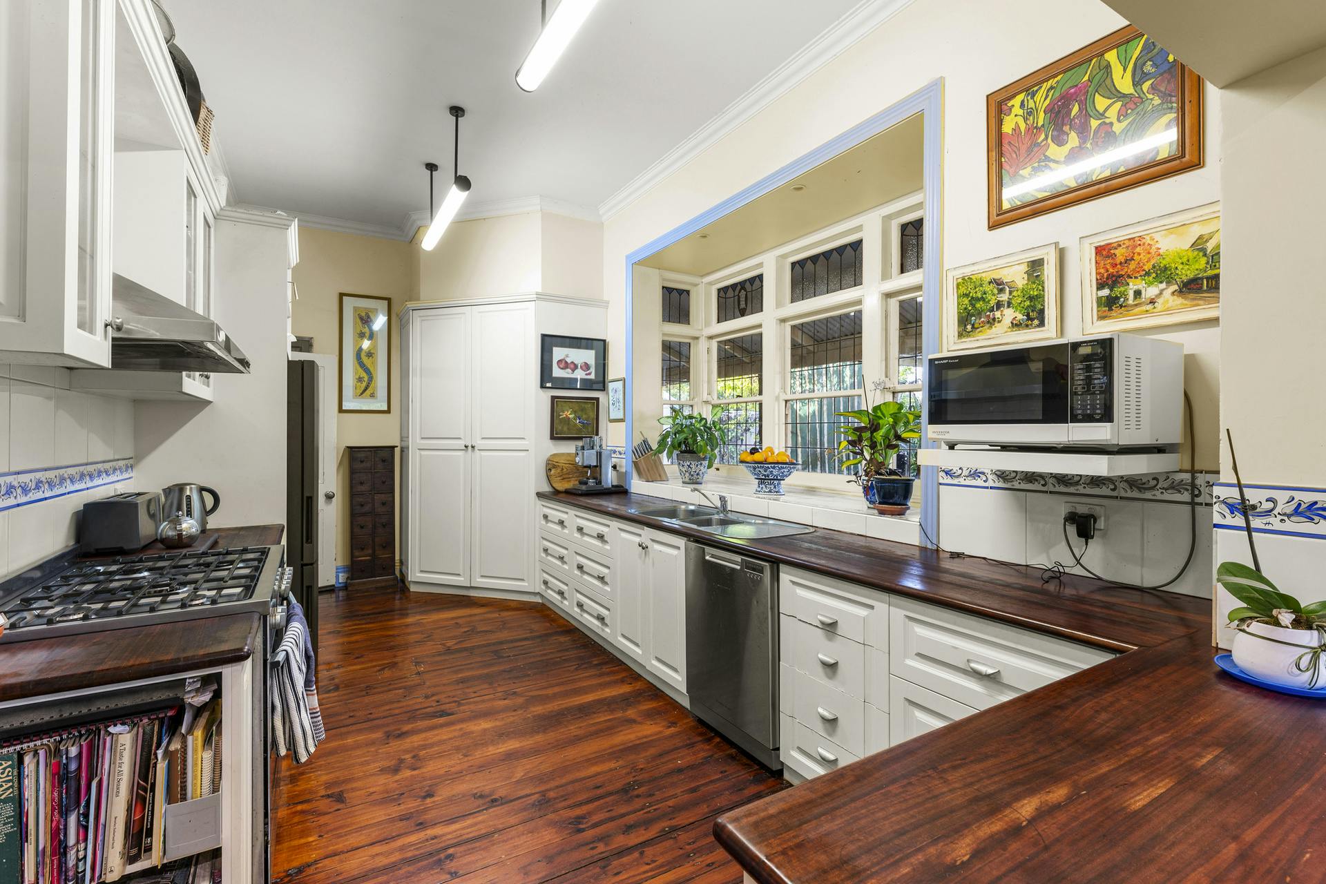 Living spaces are light-filled and functional: a large living room with open fireplace flows to dining and the kitchen, balanced by a separate sitting room for quieter retreat. Broad sliders step out to an oversized undercover alfresco for effortless entertaining. Everyday practicality is covered with a dedicated home office, internal store and two external storerooms. Wide verandahs frame the home and link the living zones to the pool, carport and established gardens. High ceilings, period detail, heating/cooling and excellent natural light underpin year-round comfort.