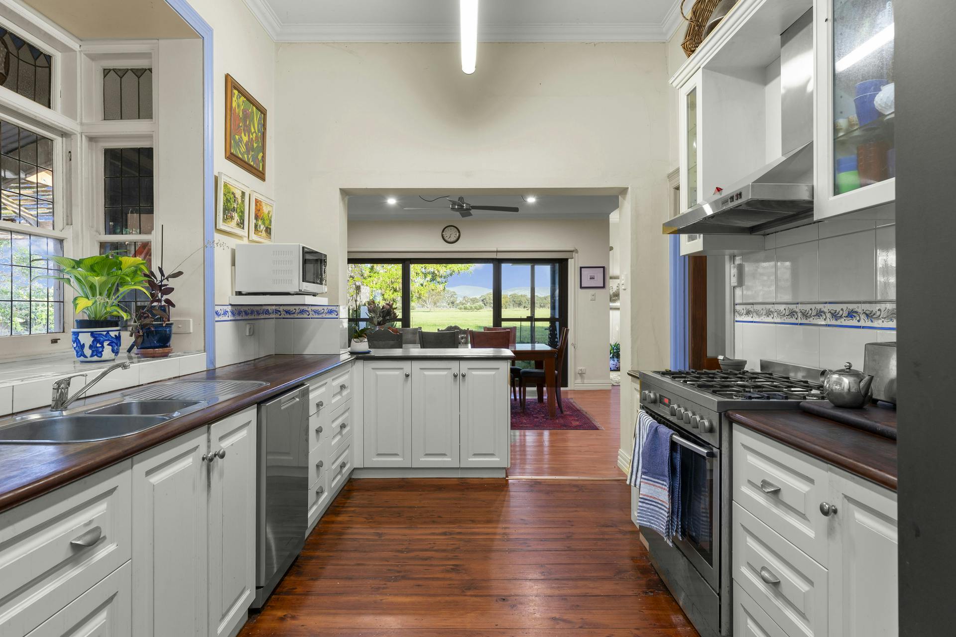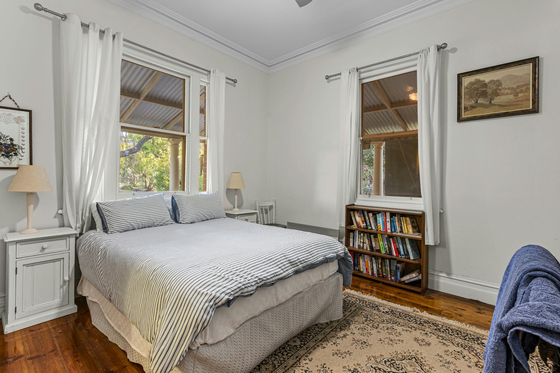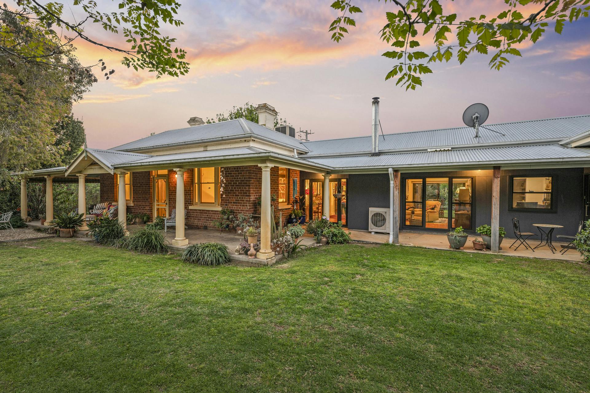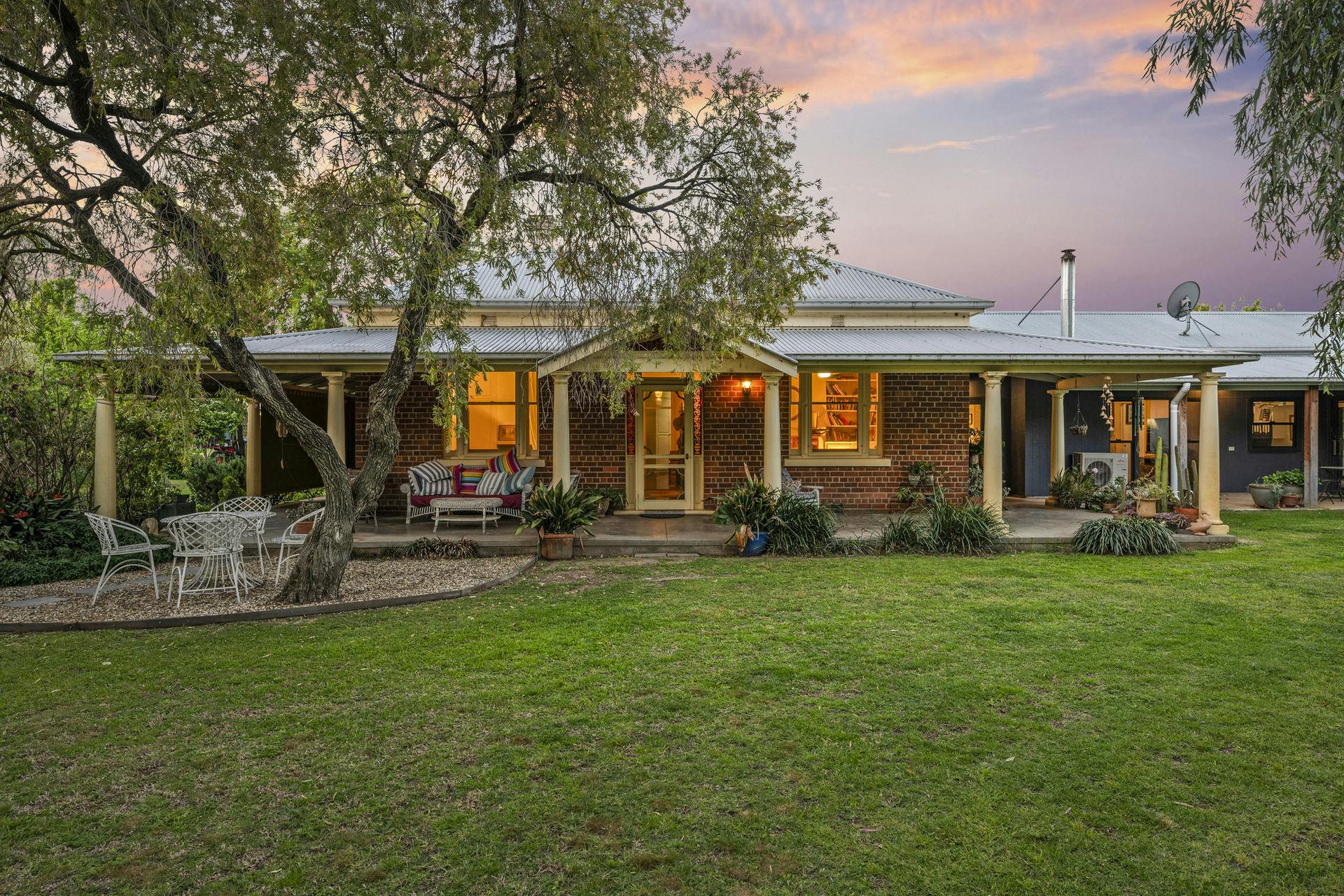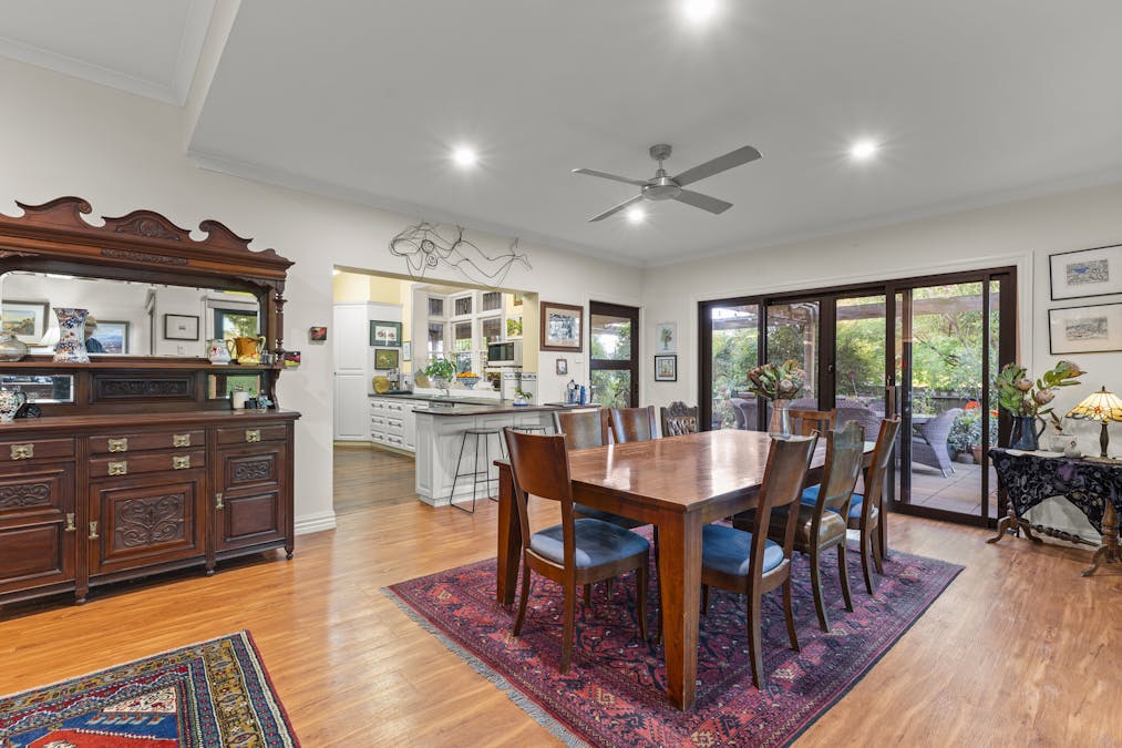 At the heart of Flowerdale Farm is a distinguished c.1904 brick homestead, sensitively extended for generous modern living while preserving its character. A private parents' wing includes a king-scale main bedroom with walk-in robe and ensuite, opening to the verandah and gardens. The separate family/guest wing in the original section of the home groups three well-proportioned bedrooms with built-ins and original fireplaces, serviced by a family bathroom and combined bath/laundry.