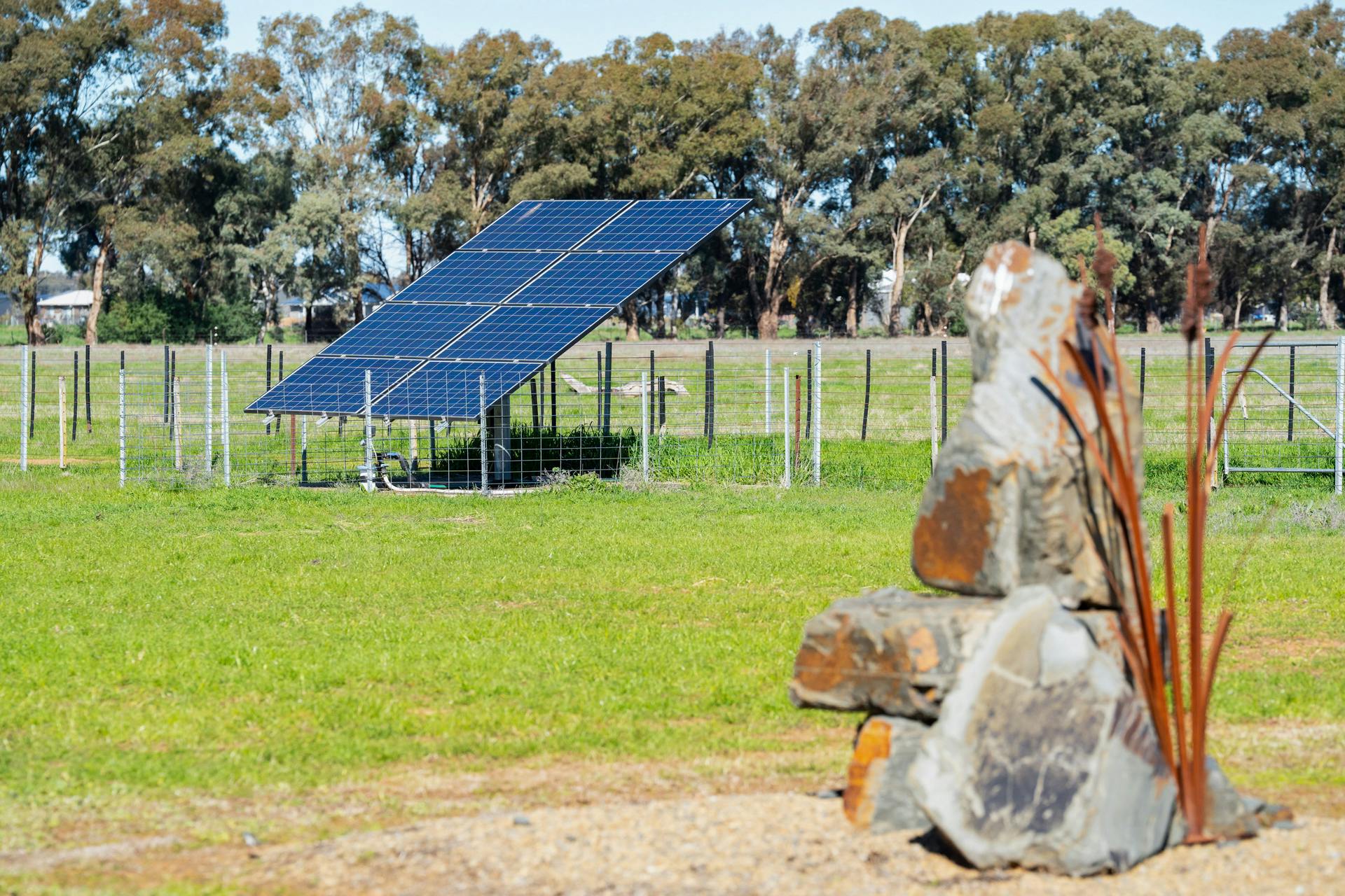 * Stock and domestic bore with solar pump ensuring reliable water supply.