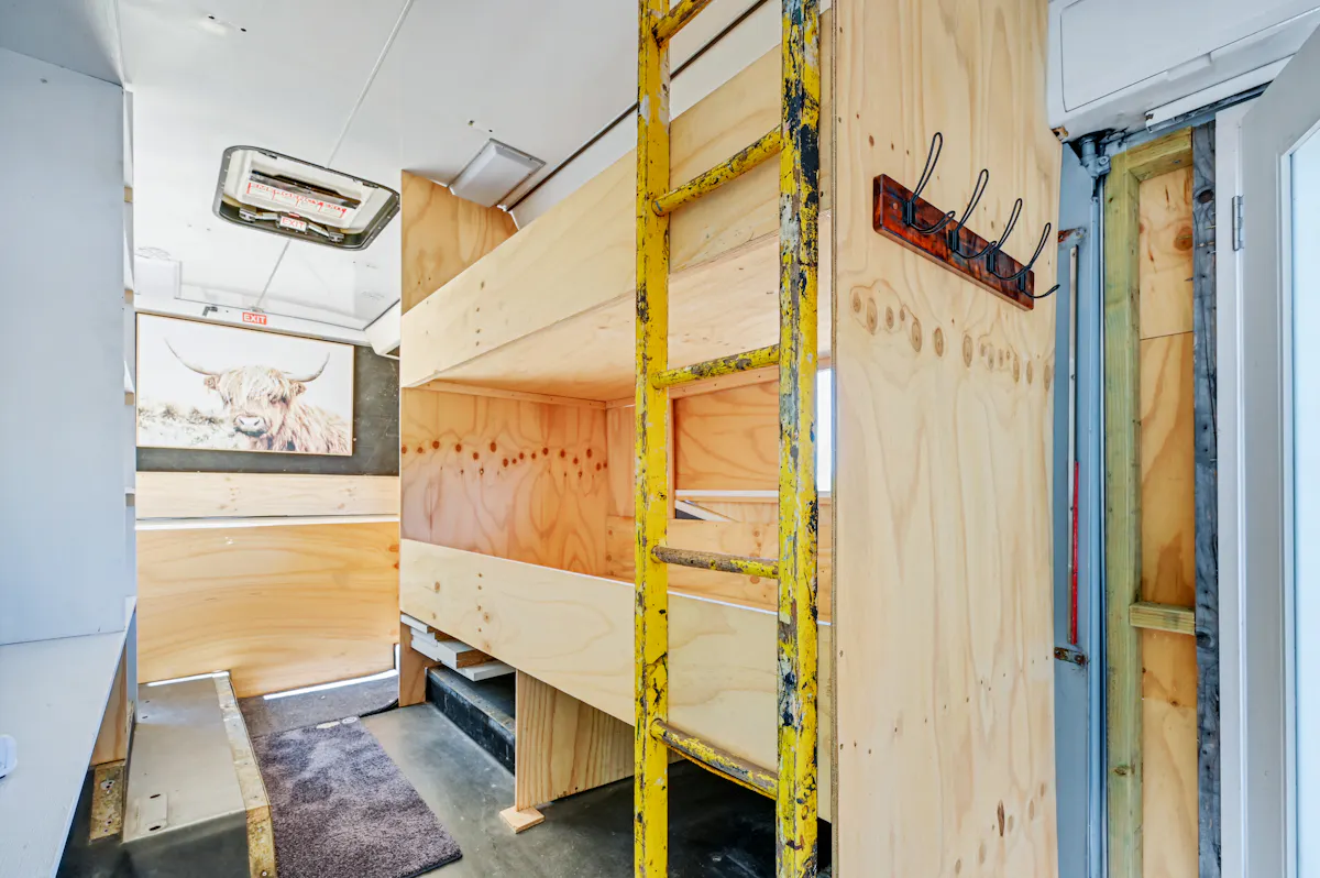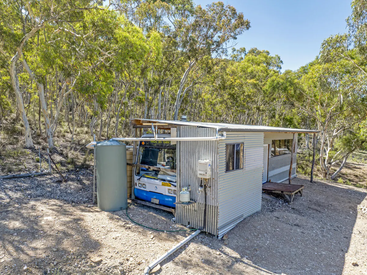 - Owner has cleverly converted a bus for use as temporary weekend accommodation
