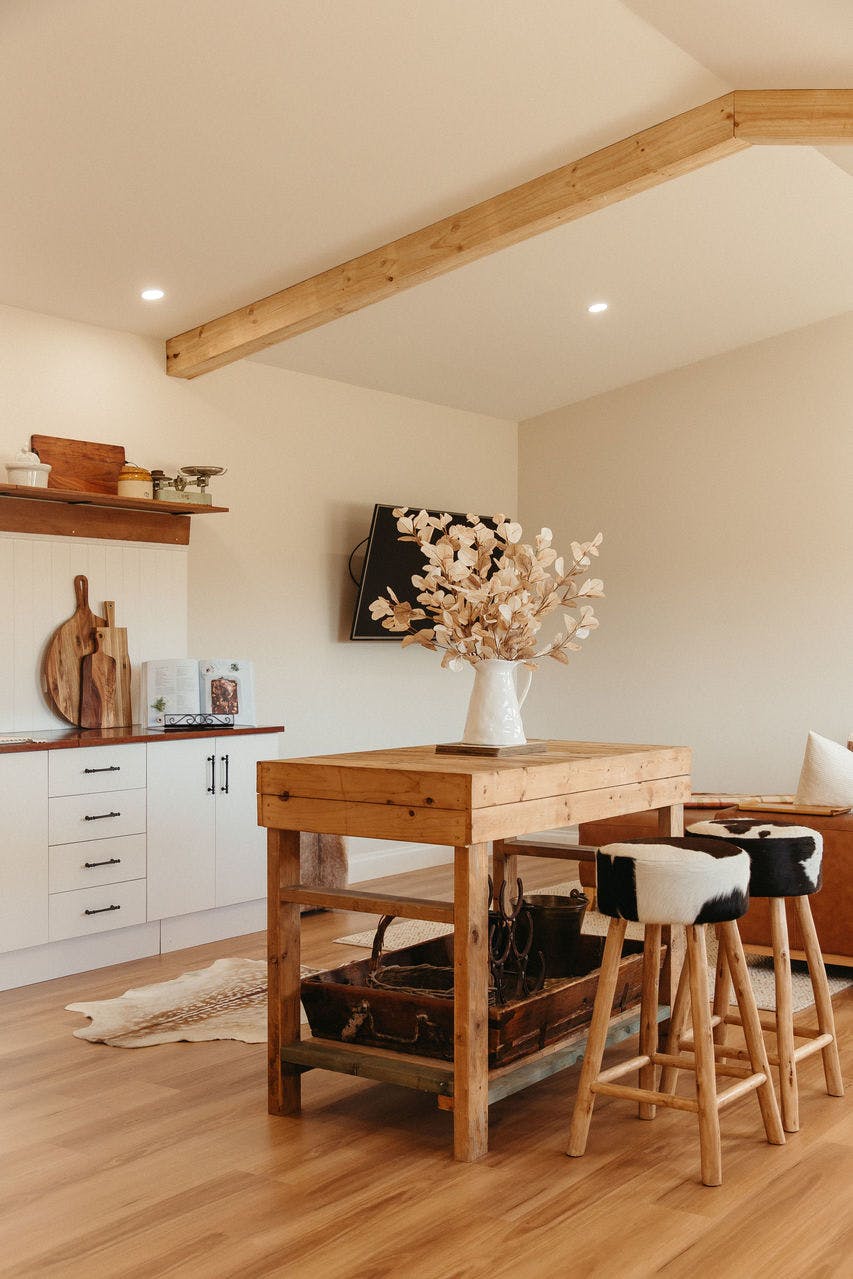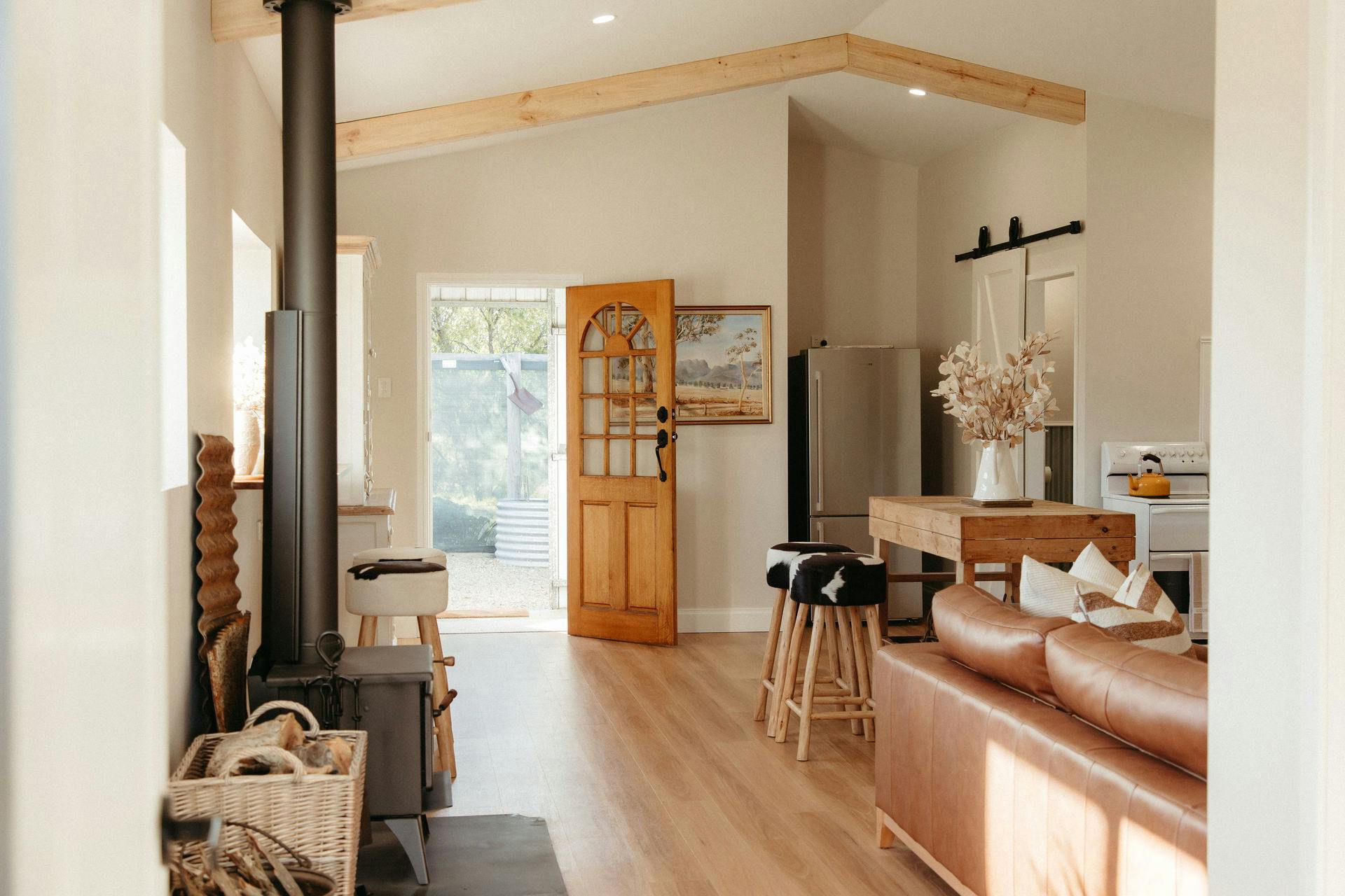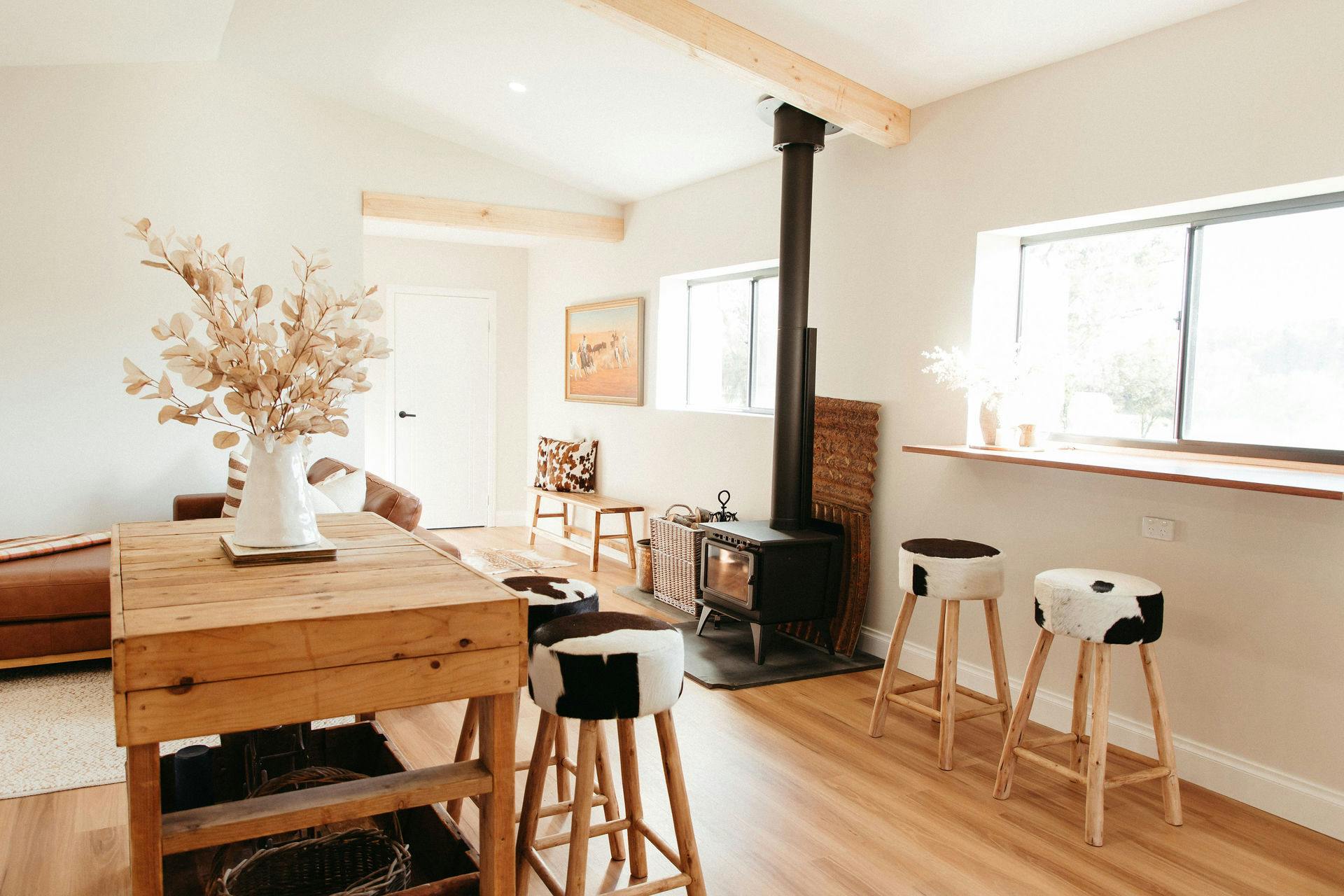 Full of warmth and rustic appeal, the converted shed home has been tastefully updated to combine country character with modern convenience.
