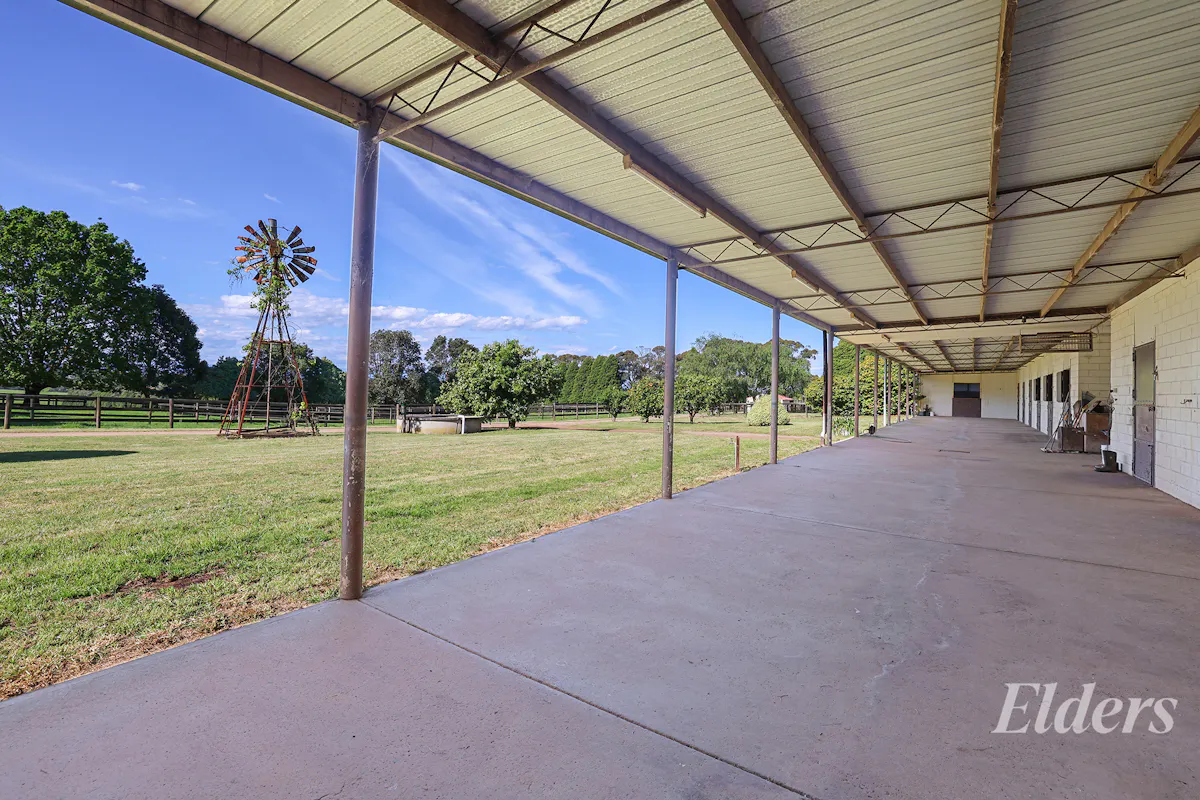 The land is well designed for equine use with large and small paddocks, excellent fencing, laneways and mature shelter trees, along with 6 day boxes with shelters and 10 day yards with stalls.