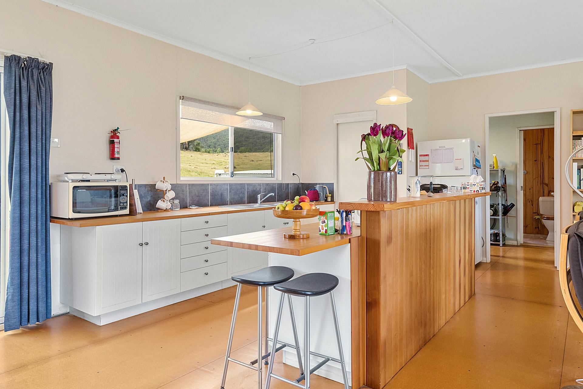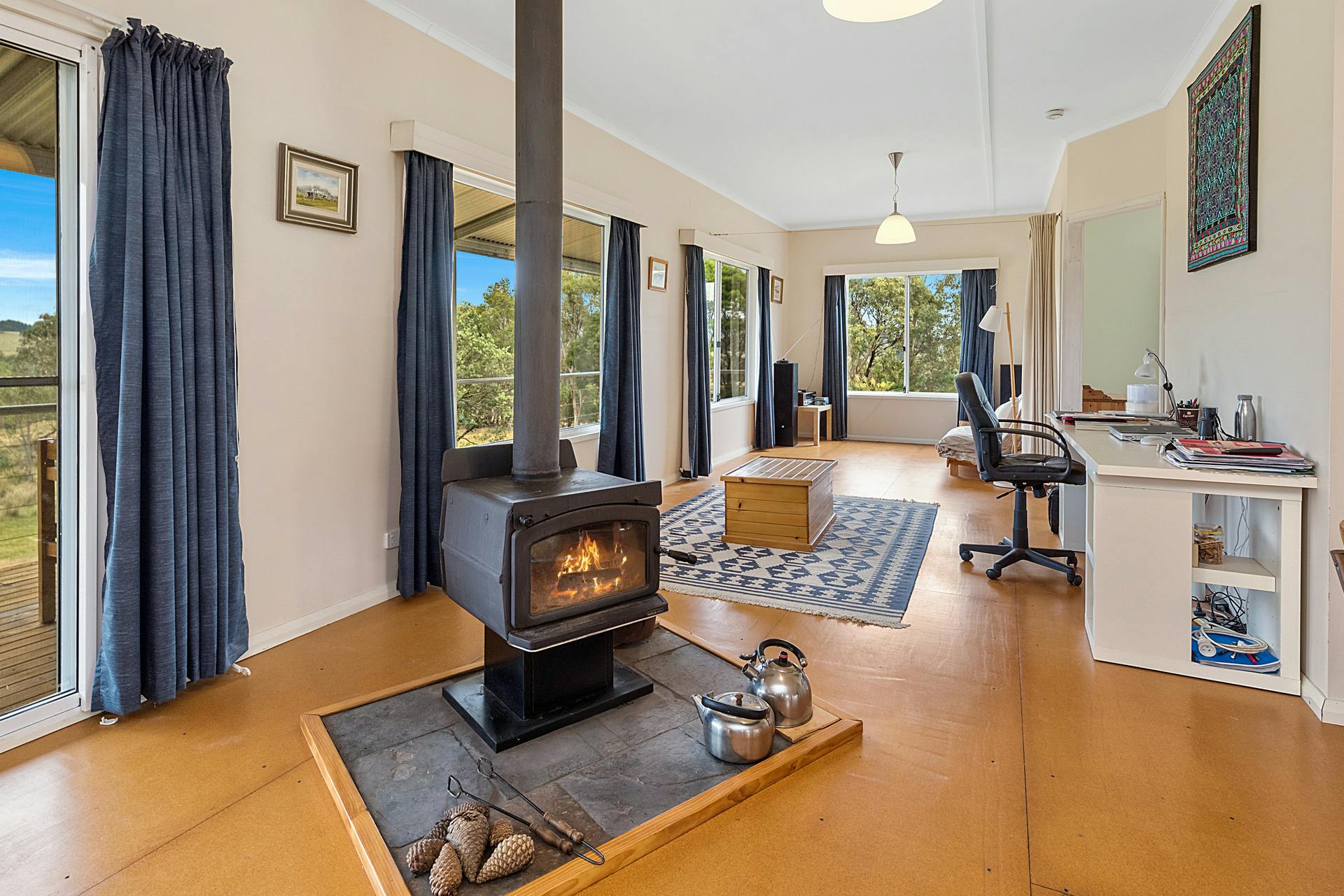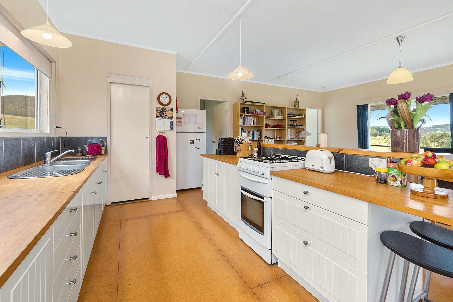 2 x bathrooms, kitchen with gas cooktop, combined laundry/mudroom and fireplace