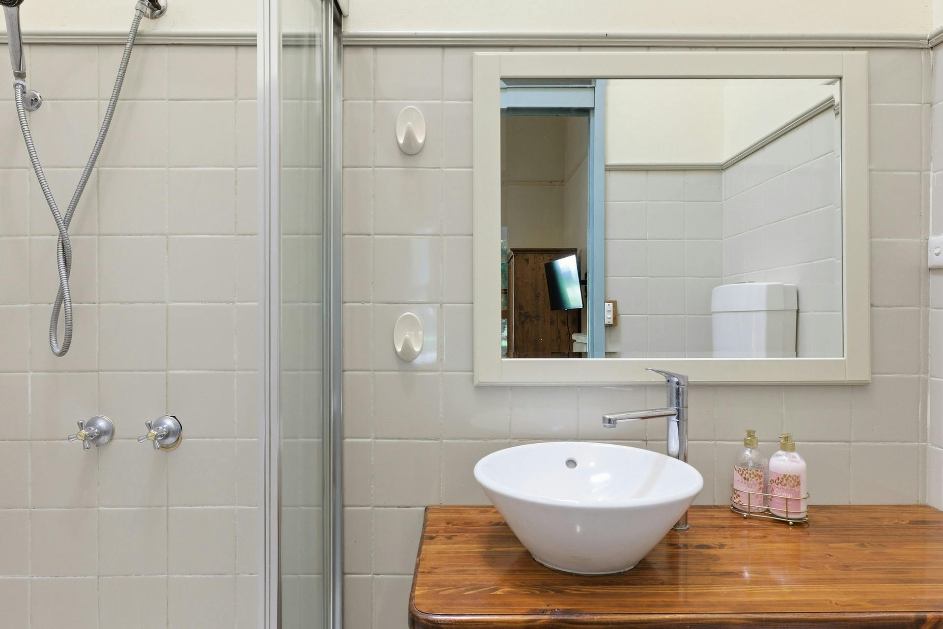 - Kitchenette, bathroom, wood heater and separate external toilet