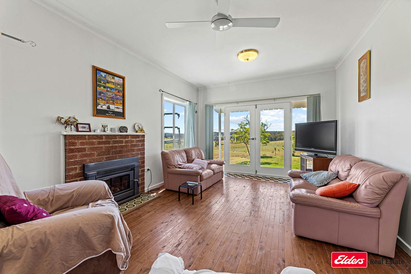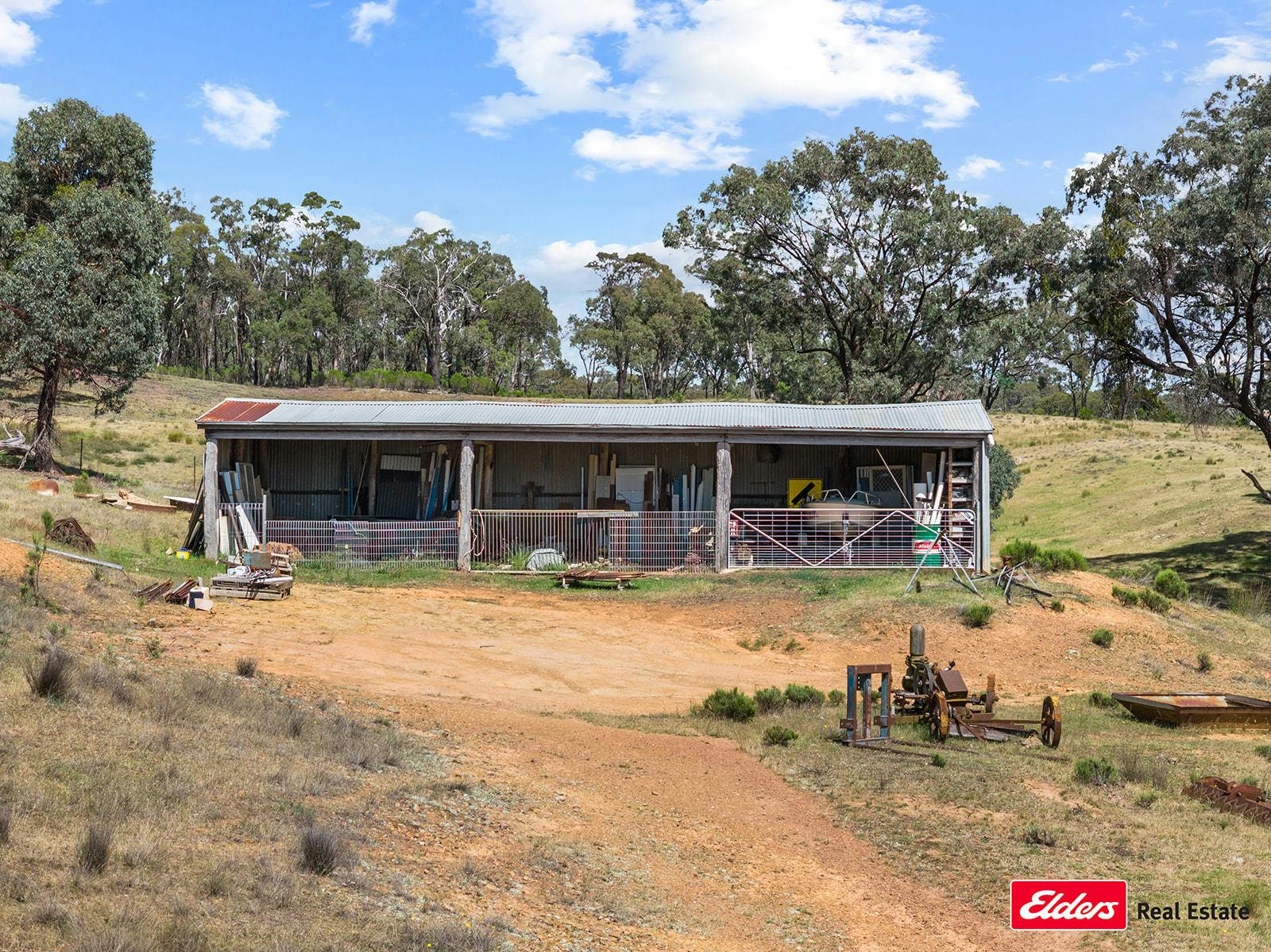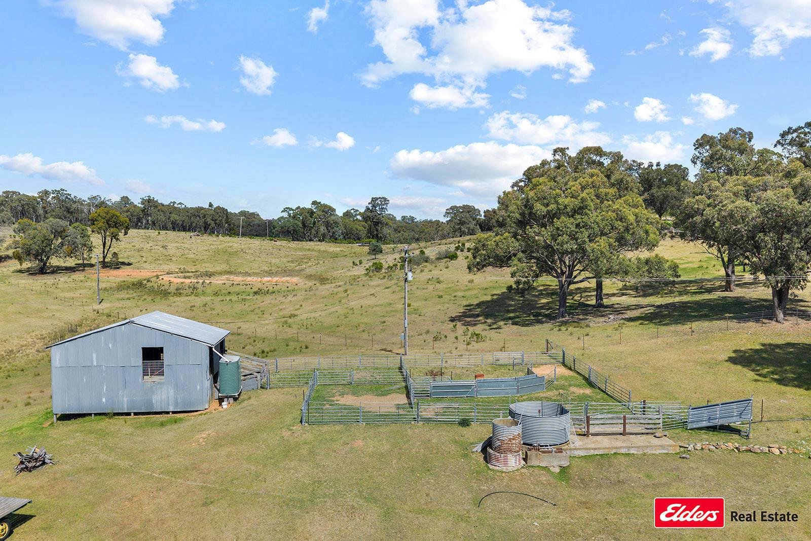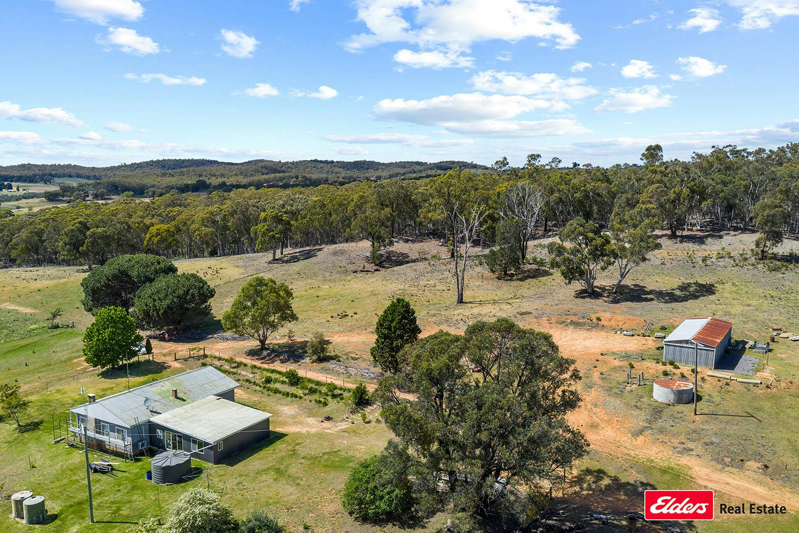 Comfortable semi furnished residence, featuring 3 bedrooms, 2 bathrooms, kitchen, dining and lounge room with French doors onto an alfresco deck overlooking the paddocks and valley beyond. Mains power connected, reverse cycle air conditioner and wood fire keeps the home comfortable year round. The home has a massive garage under the main roof that could be converted into more living space if desired. Fenced house yard and established trees makes it perfect for kids and pets to play.