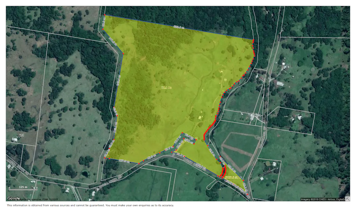 This property ticks so many boxes. There is a good mix of flats, high ground and rainforest. Youngmans Creek meanders along the boundary with a permanent water supply and swimming hole. The top section of the property has more flats with red soil, a spring-fed dam and extensive views. The large 12m x 11m American Barn style shed has stable doors, a high entry door and enough height for a mezzanine level to be added. Plus there is the original farmhouse and garage and old dairy bales. Subject to council approval you could build a second dwelling on this property within 100 metres.The current owner would be interested in leasing back the land if of interest.