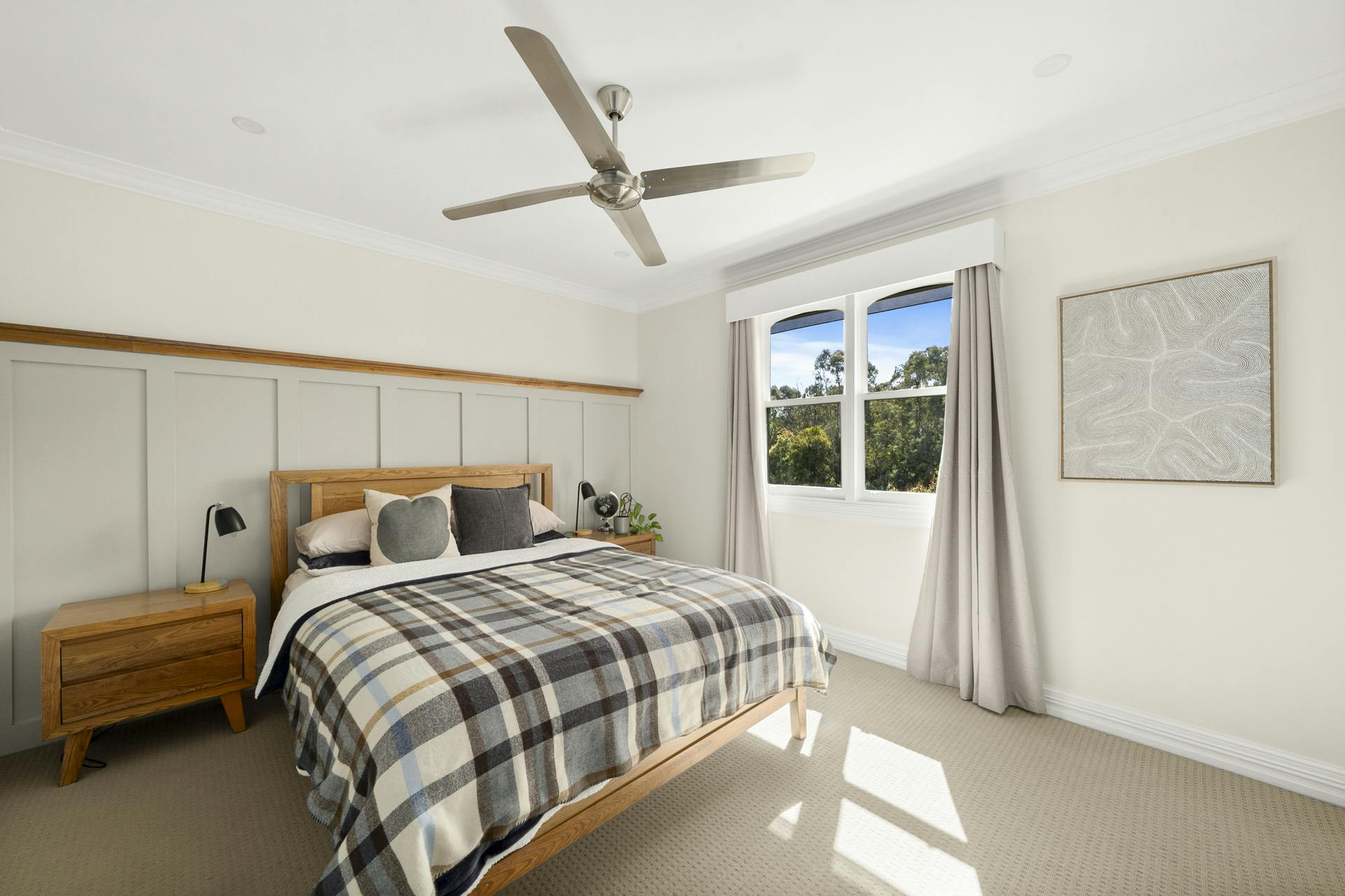 The showpiece kitchen features Vic Ash benchtops, premium appliances and a large island ideal for entertaining. The bespoke bathroom and custom-fitted dressing room reflect luxury at every turn. A separate study, home gym and multiple outdoor zones including a covered alfresco with decorative timber detail provide versatile spaces to live, work and unwind in total comfort.