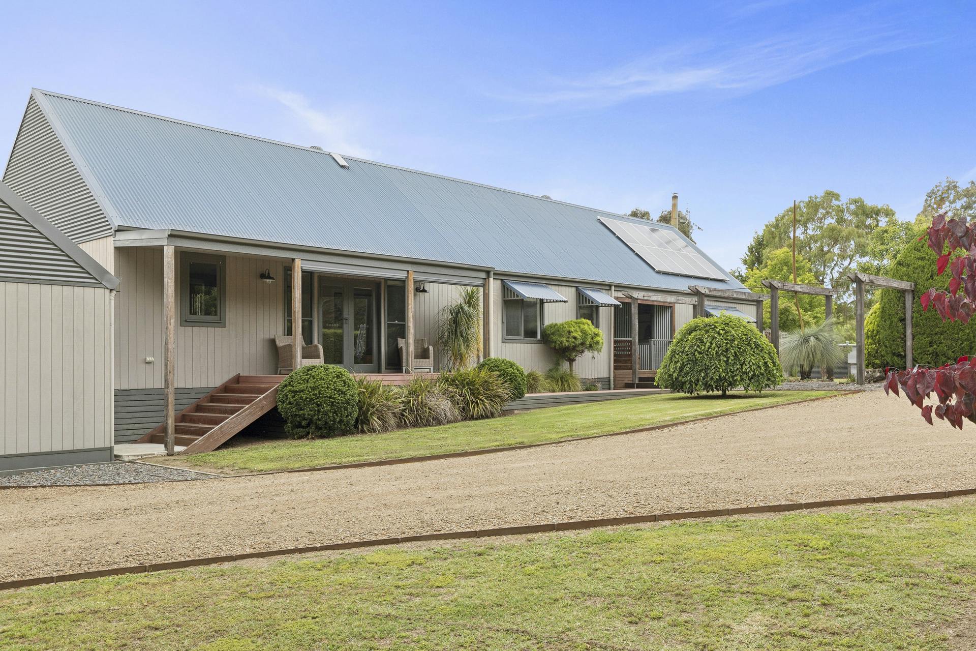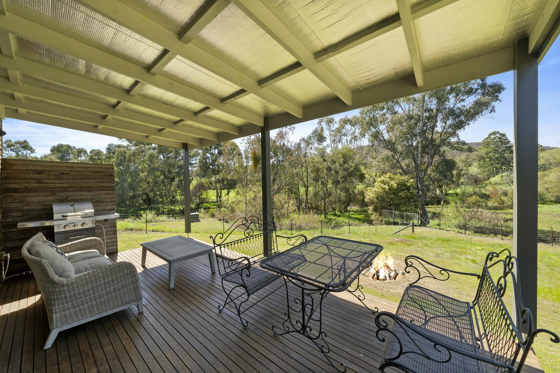 Tucked discreetly away from the main residence, a fully self-contained studio offers the perfect setup for visiting family, short-stay guests or a quiet retreat space, another place to enjoy the peaceful connection with nature. This beautifully crafted timber and iron pod includes a living area, kitchenette, bedroom, bathroom and covered deck framed by established gardens and sweeping lawn. With complete independence, it presents excellent potential as a weekend rental or multigenerational living option.