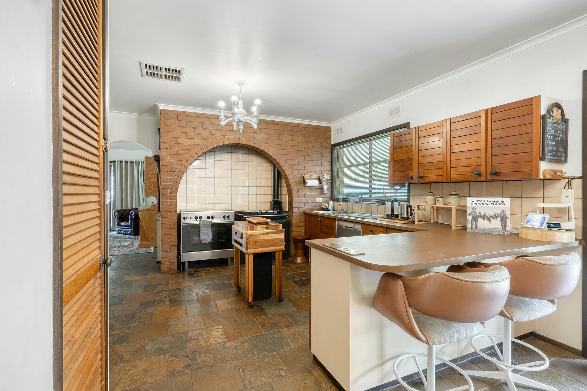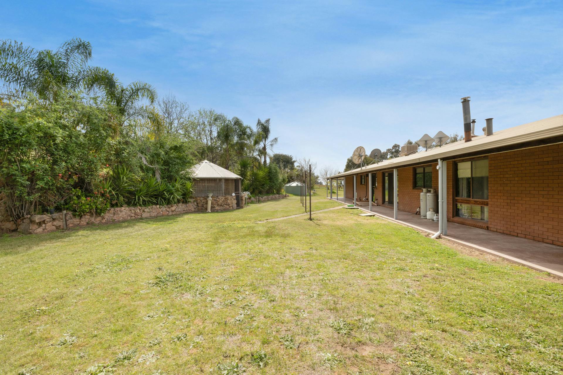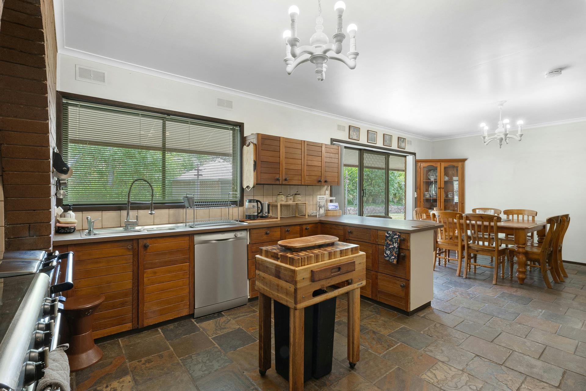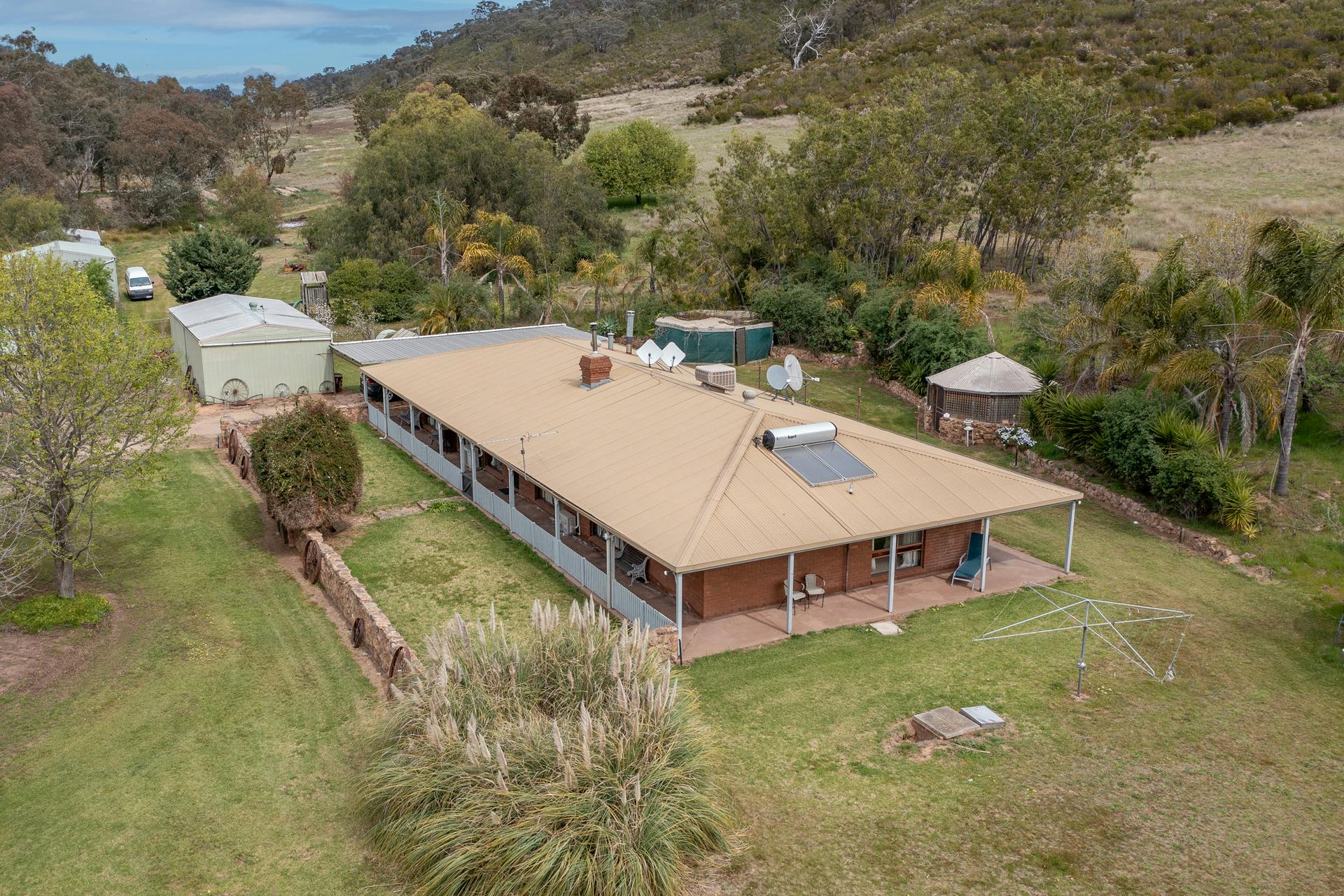 The circa 1970s homestead is large, spacious and solidly constructed, showcasing distinctive stonework feature walls and generous proportions throughout. Offering five bedrooms and two bathrooms, the home includes expansive living areas, gas cooking complemented by a combustion stove, Coonara wood heating, evaporative cooling and split-system air conditioning.