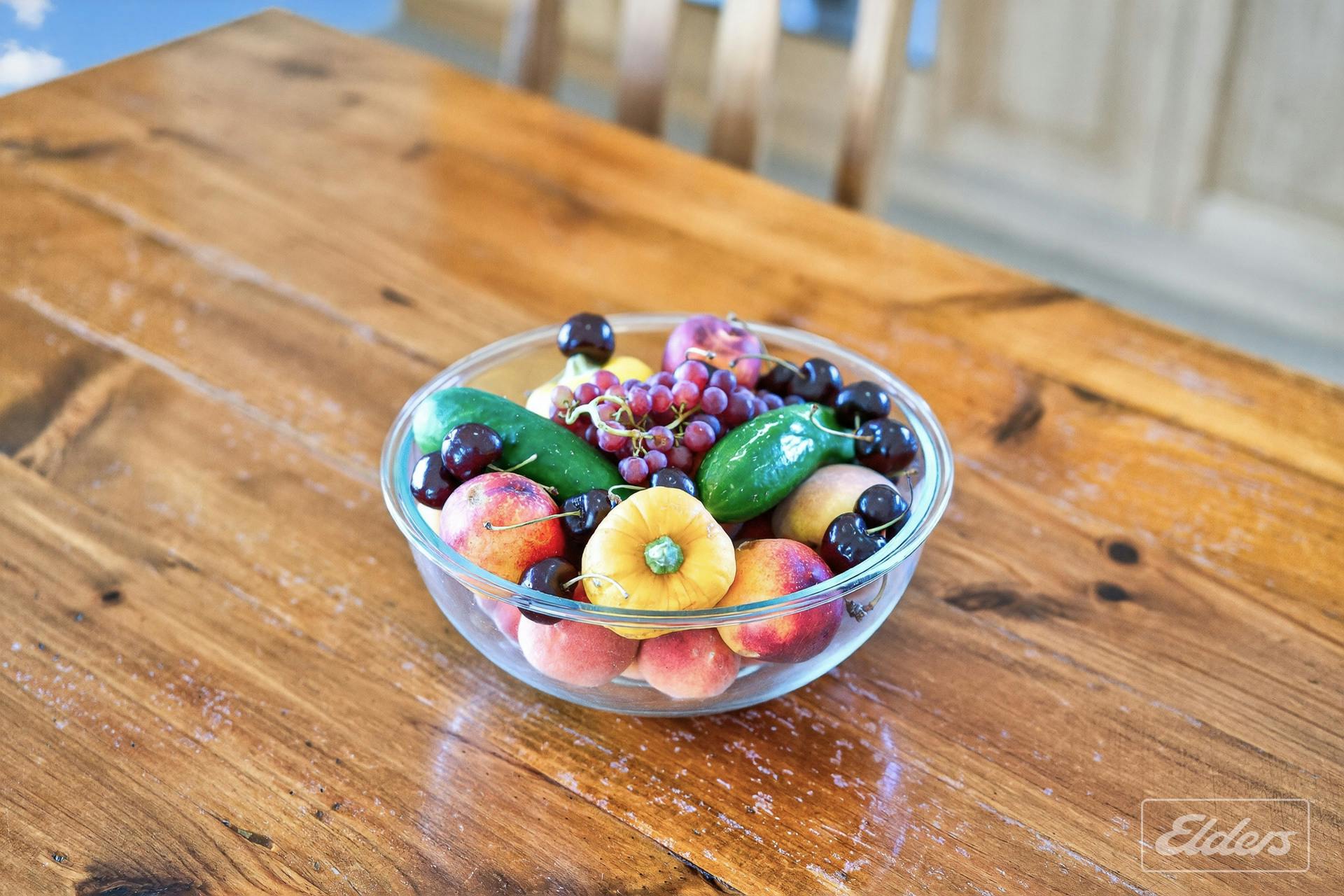 The established orchard produces fruit year-round, with varieties selected to ripen in succession. The current custodians produce approximately 80% of their food onsite, all organically grown.