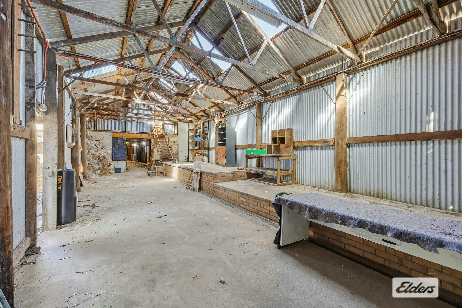 From the cottage, access is provided to the original underground cellar, leading to an impressive array of shedding and infrastructure. A rustic studio or "man cave," constructed from railway sleepers, includes a pot-belly wood heater, bar, and basic kitchen and bathroom amenities-ideal for entertaining, creative pursuits, or conversion to a studio, office, or showroom for a home-based business.