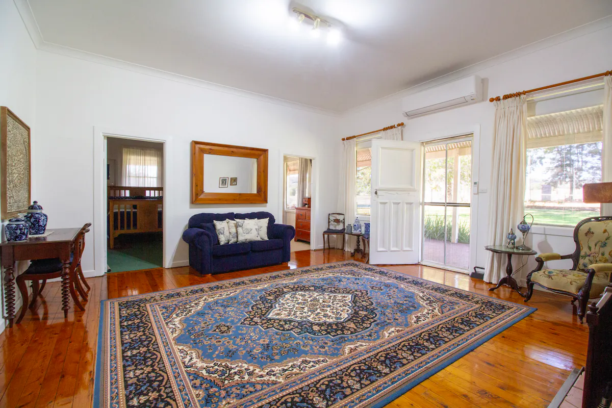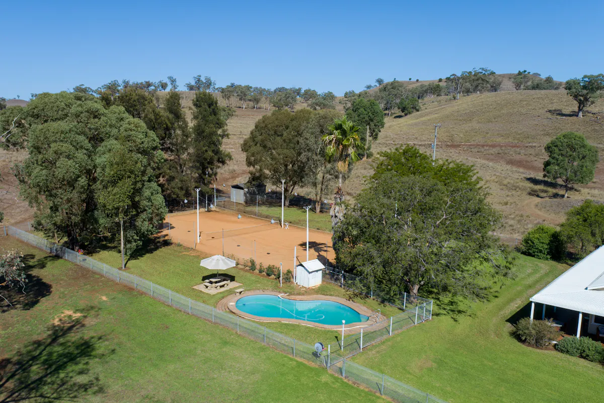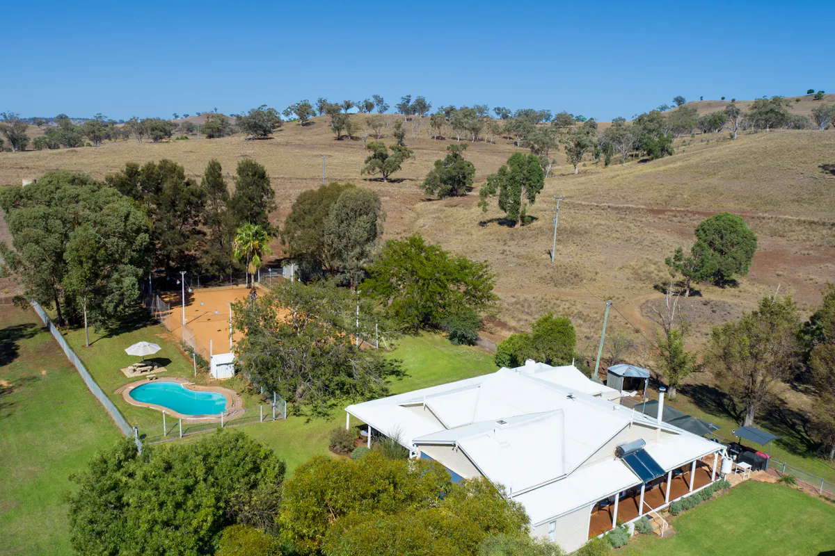 The circa 1930 character-filled homestead is beautifully set amid established, well maintained gardens and provides very comfortable four bedroom accommodation with multiple living areas and surrounding verandahs. It is further enhanced by exceptional lifestyle amenities including a swimming pool, tennis court, and inviting outdoor entertaining areas, creating an ideal setting for relaxed rural living and entertaining.