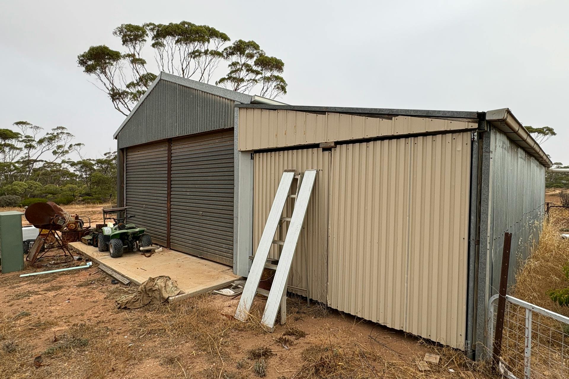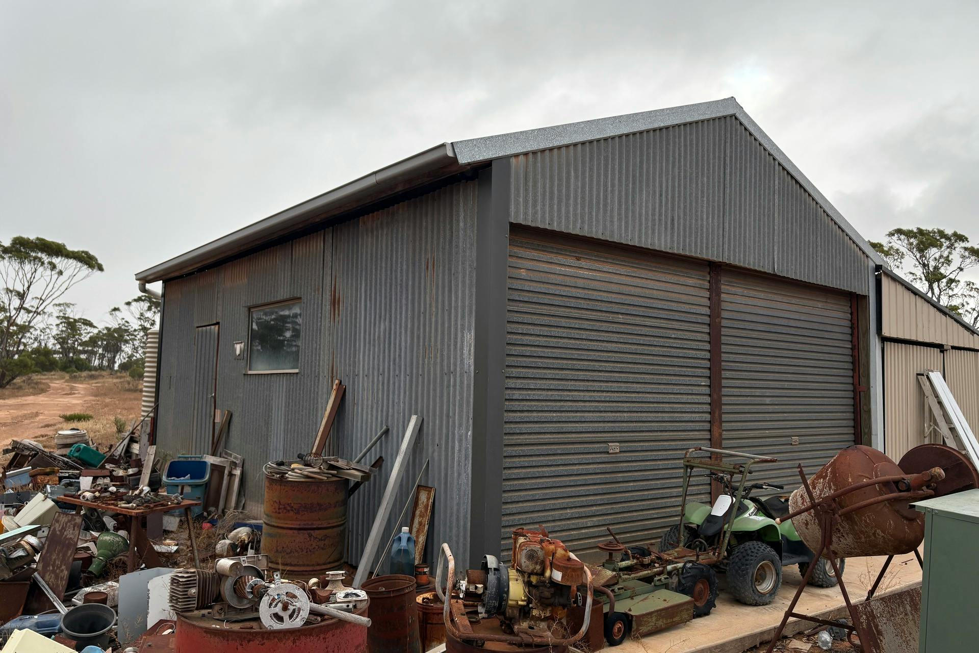 • A former Atco-style building (not liveable), offering potential for repurposing or removal depending on your vision.