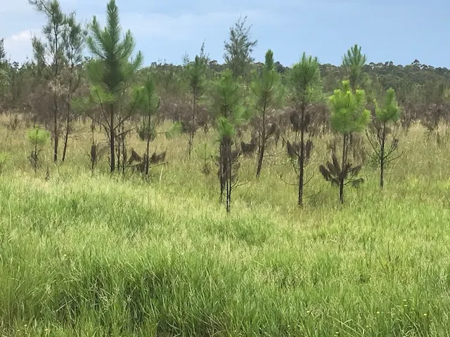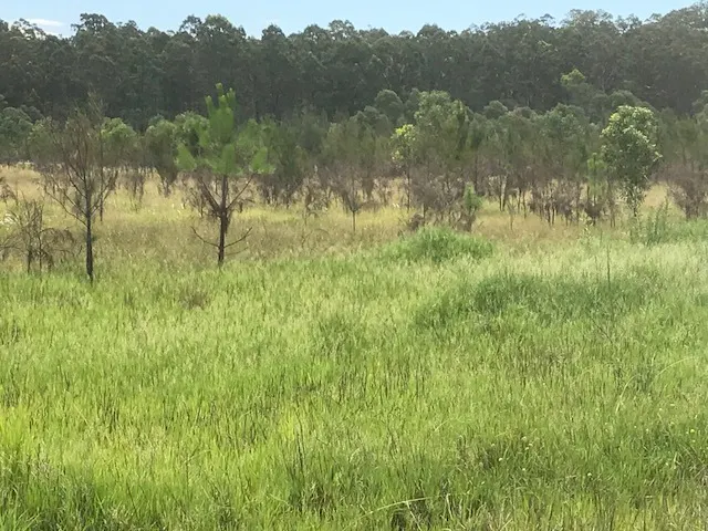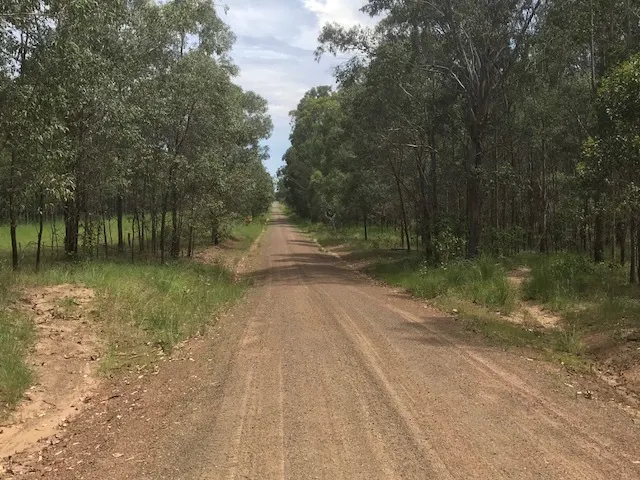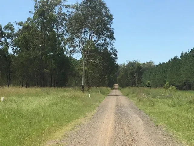 299 acre flat oasis.It was originally a commercial tree forest but now has regrowth of Casuarina Pine. As soon as you turn into Clearfield Road the property starts on both sides of the road. There is natural bush on the right and a dam then the pines start.