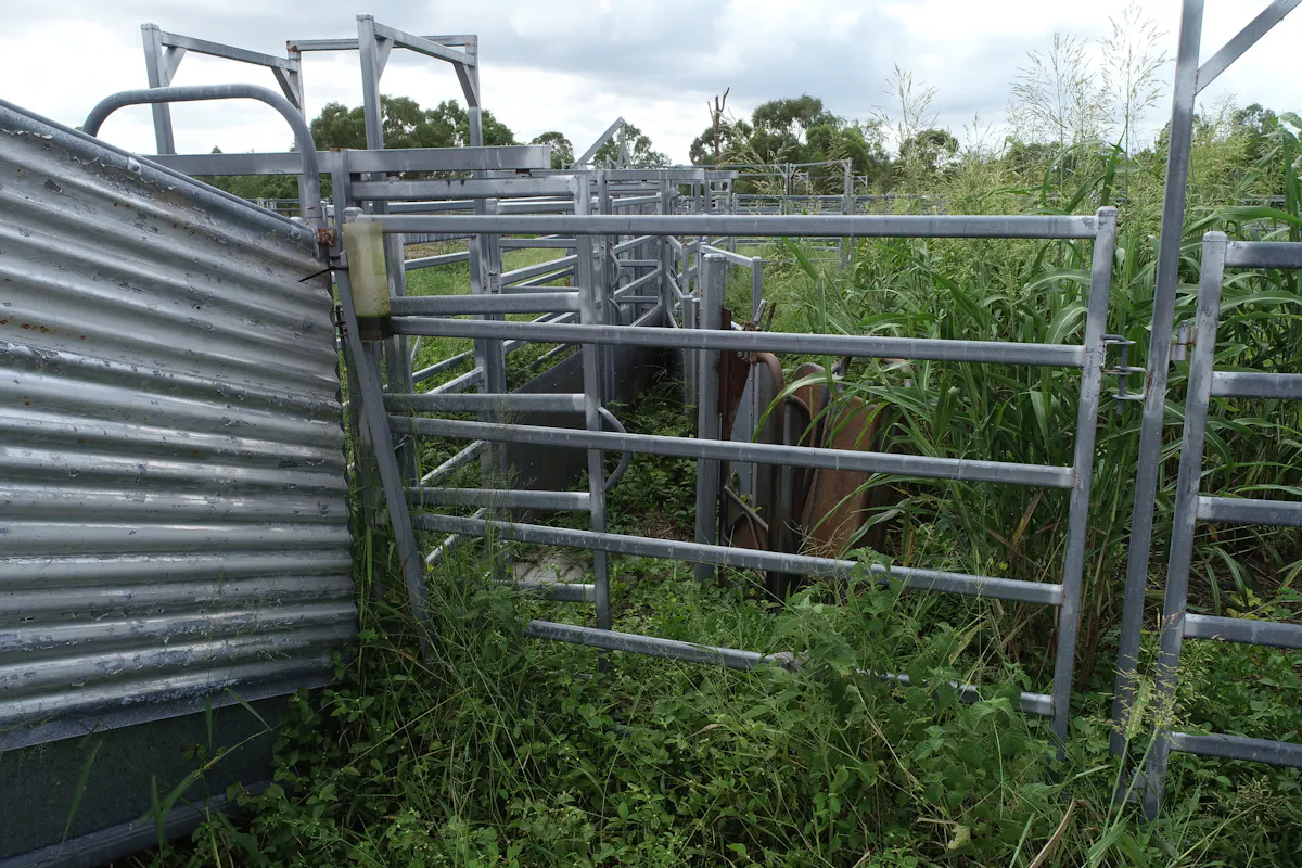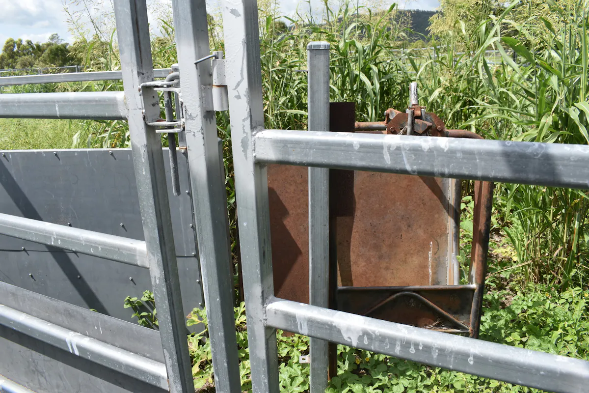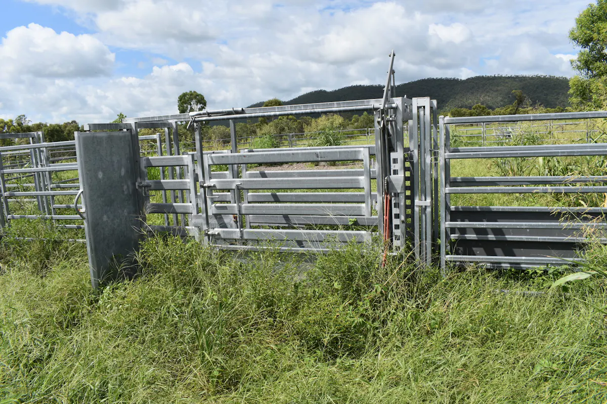 Portable panel yards with head bale and calf race.