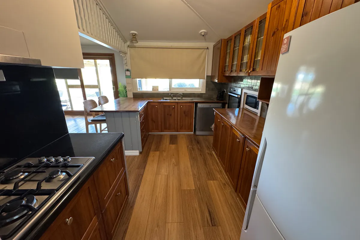 - Functional kitchen with wall oven, gas cooktop, rangehood and dishwasher